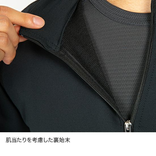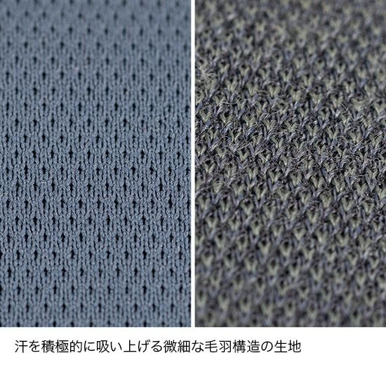 メリノウール本来の保温・調湿性と高機能ポリエステルの吸汗速乾加工を兼ね備えているため、蒸れにくく汗を素早く乾かします。