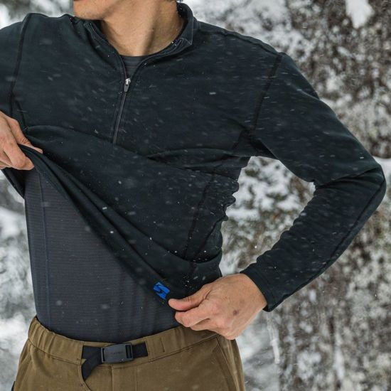 メリノスピンサーモは、2層の袋編み構造の生地を採用し、生地の層間に温かな空気層を保つことで、厳冬期を含めた冬期のアクティビティに適した保温性を備えます。