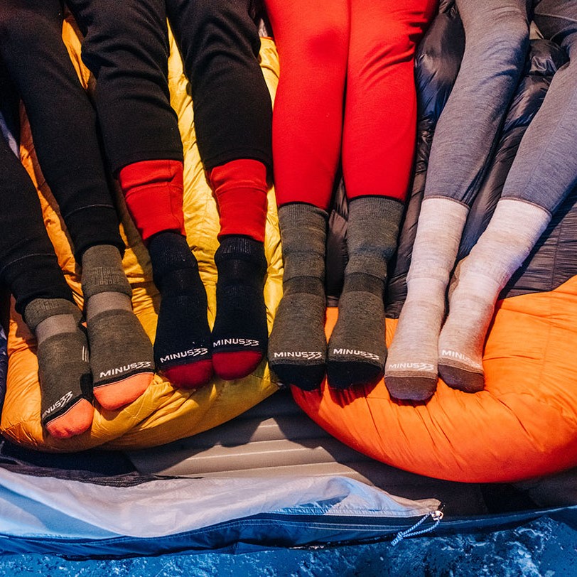 - ハイキングに最適なクルー丈のメリノウールソックス