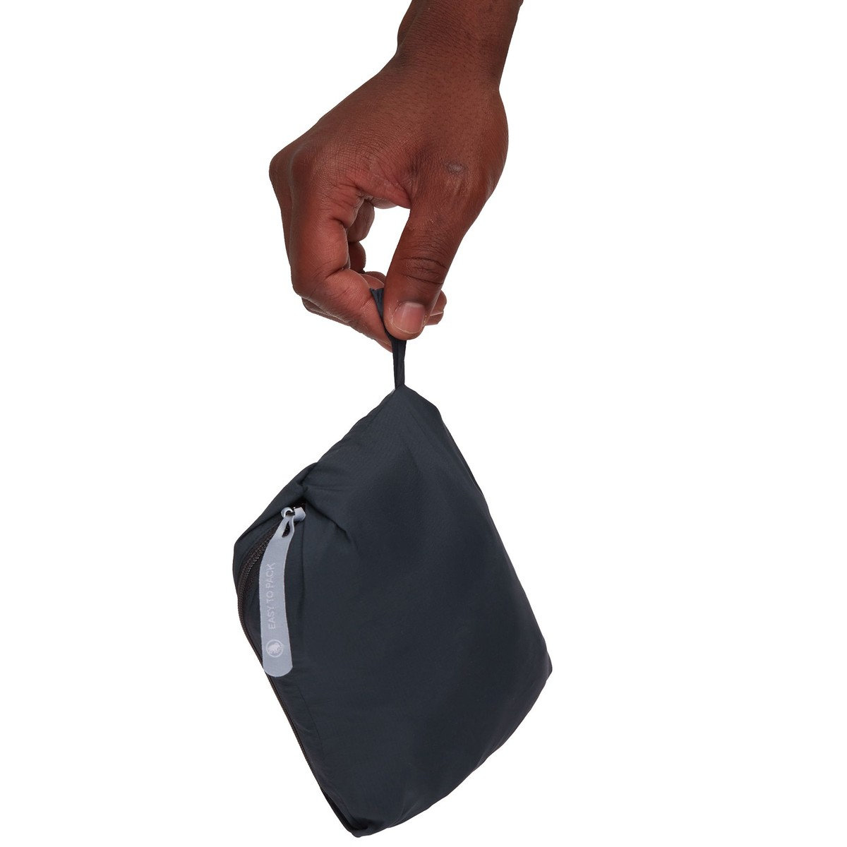 ヘルメット対応フード、丈夫なストレッチ素材の前腕、2ウェイジッパーに加え、ジャケットを着用しないときはスタッフバッグとして使用できる胸ポケットなど、実用性と軽さを追求した無駄のないデザインが魅力です。