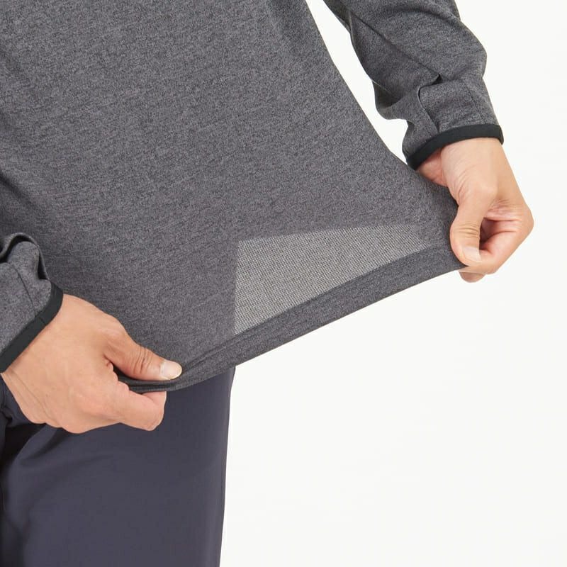 コットンのような肌触りのリサイクルポリエステル100%素材は速乾性と対紫外線防止機能を備えたクイックドライニットで活動量の多い冬の1日でも安心して着用していられます。