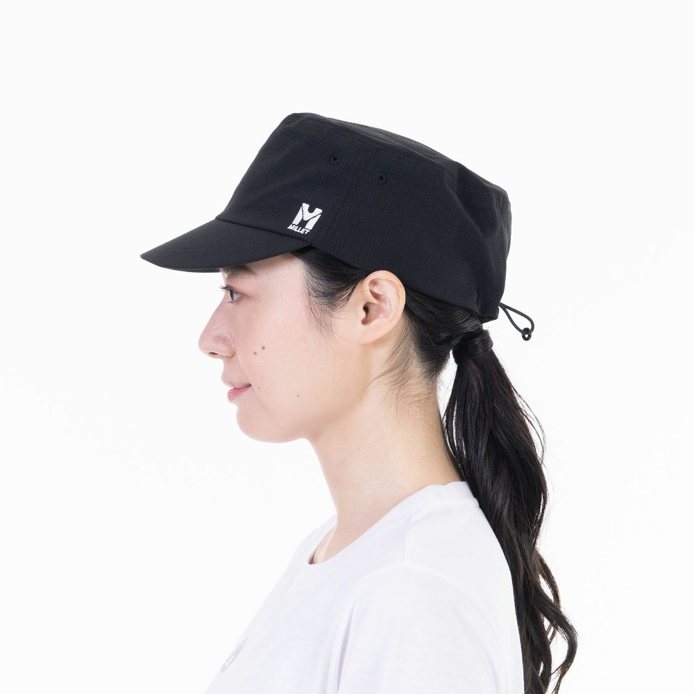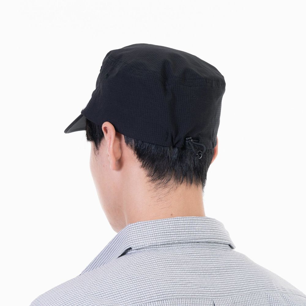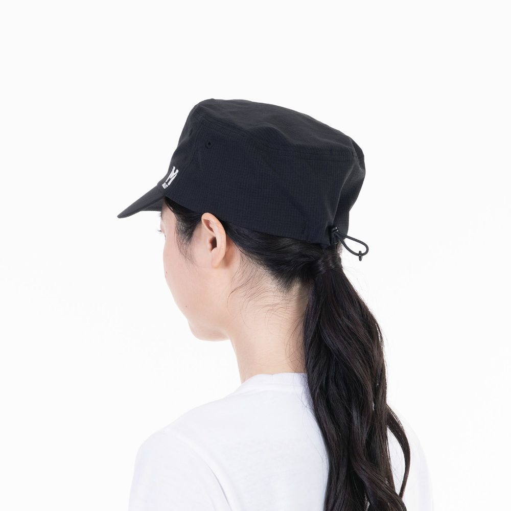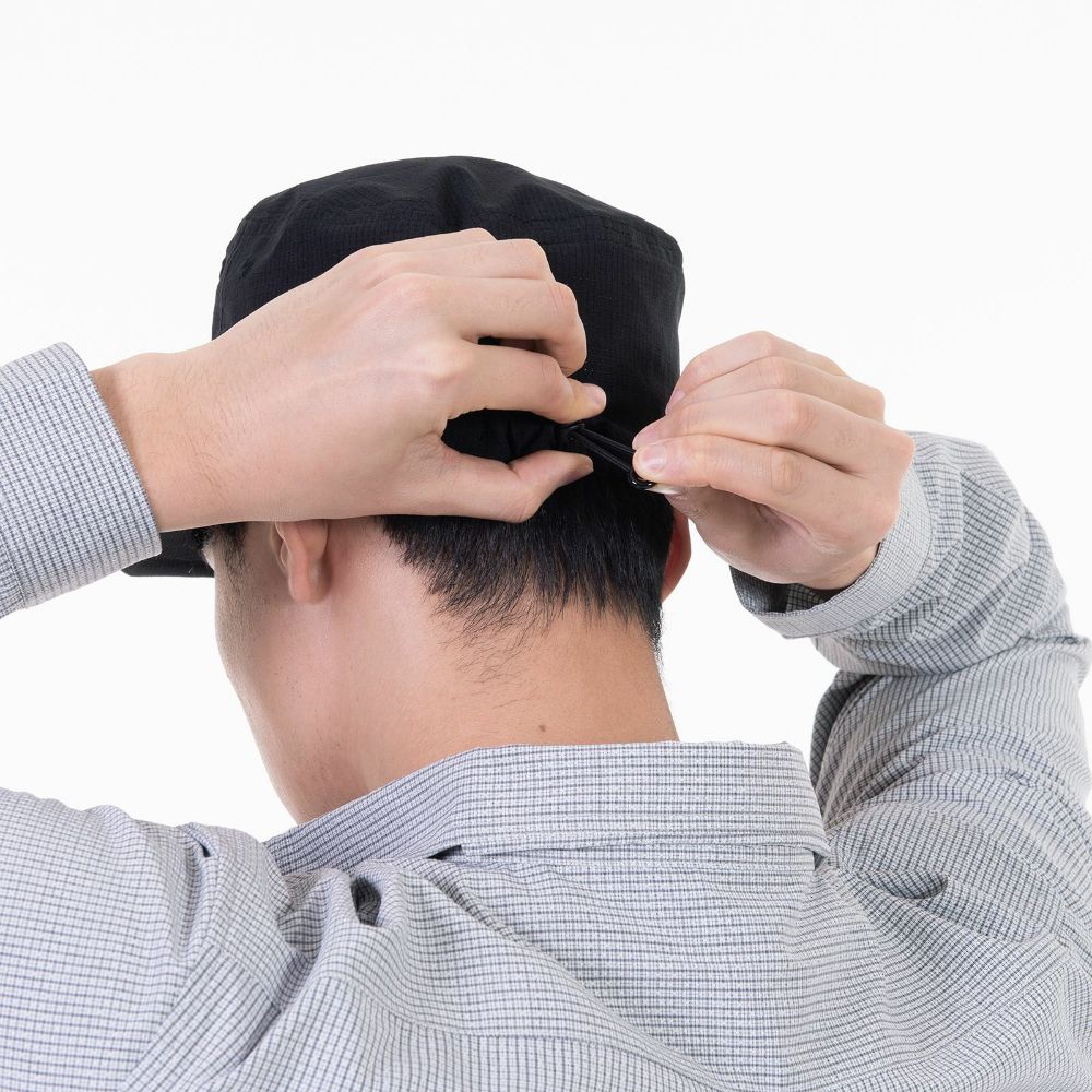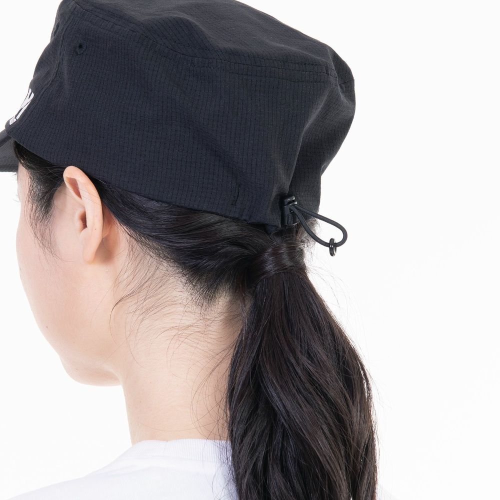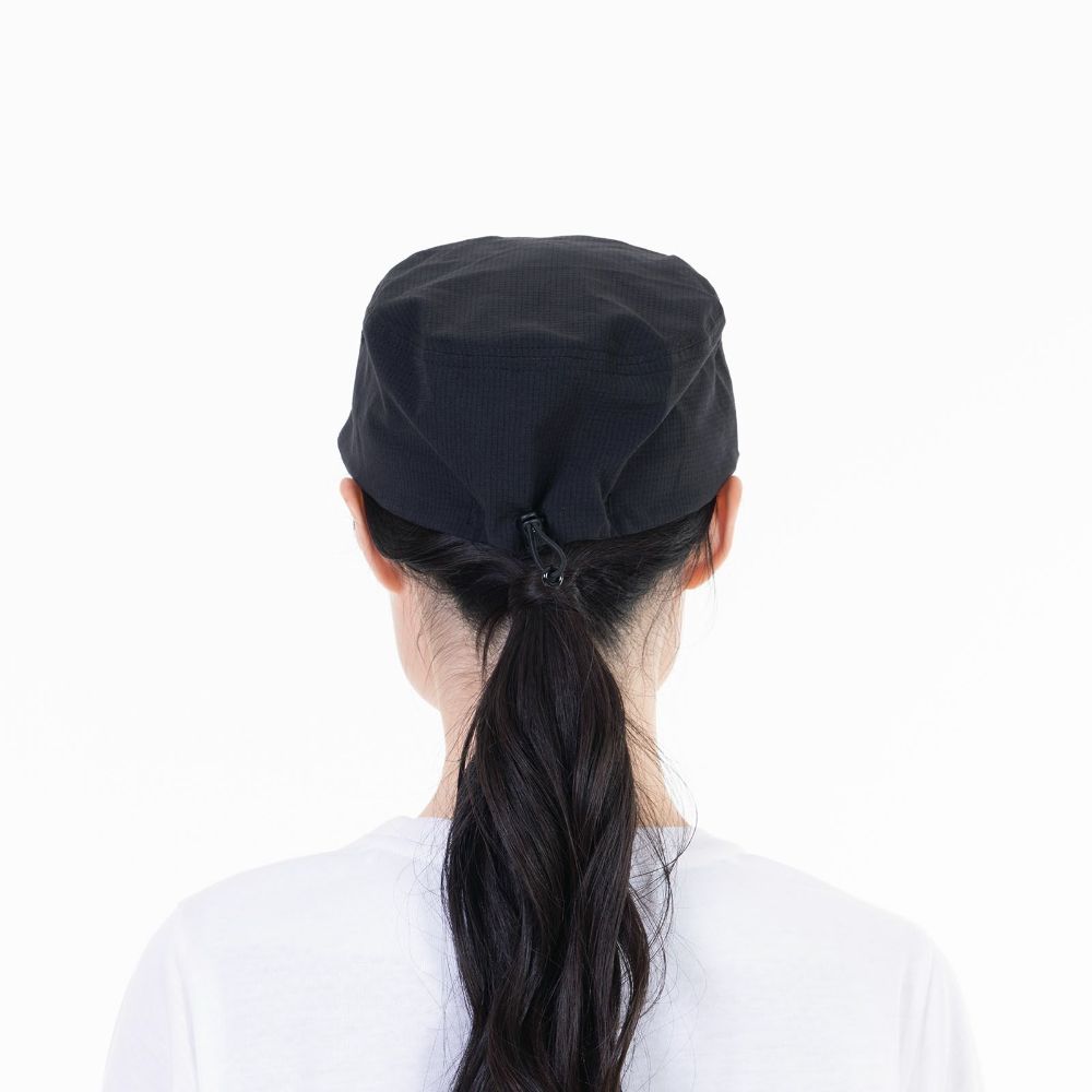 ストレッチ性のあるメッシュ素材を使った、軽量・高通気で速乾性の高いメッシュキャップ。バックアジャストドローコードによってサイズ調節可能。