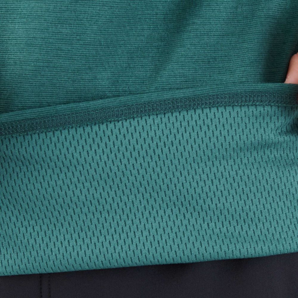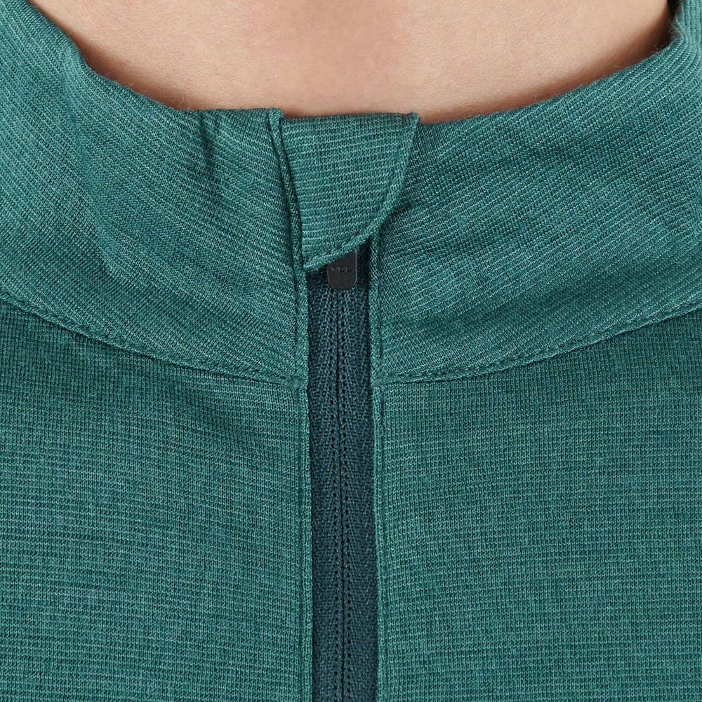 スタンドカラーと長めのフロントハーフジップは温度調節がしやすく、袖口にはより保温性の高めるサムループが付いています。