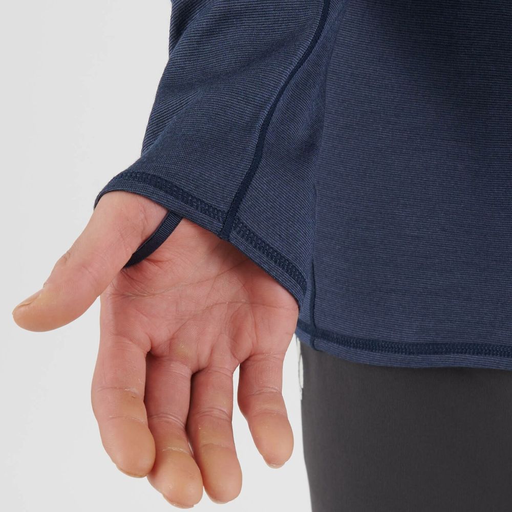 カジュアルにも合わせやすいクルーネック、袖口にはより保温性の高めるサムループが付いています。