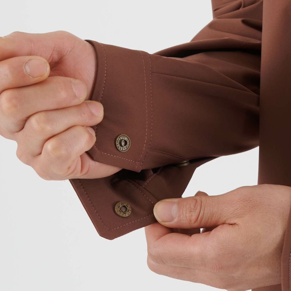 撥水性を備えた生地の軽くて動きやすいシンプルなシャツ。