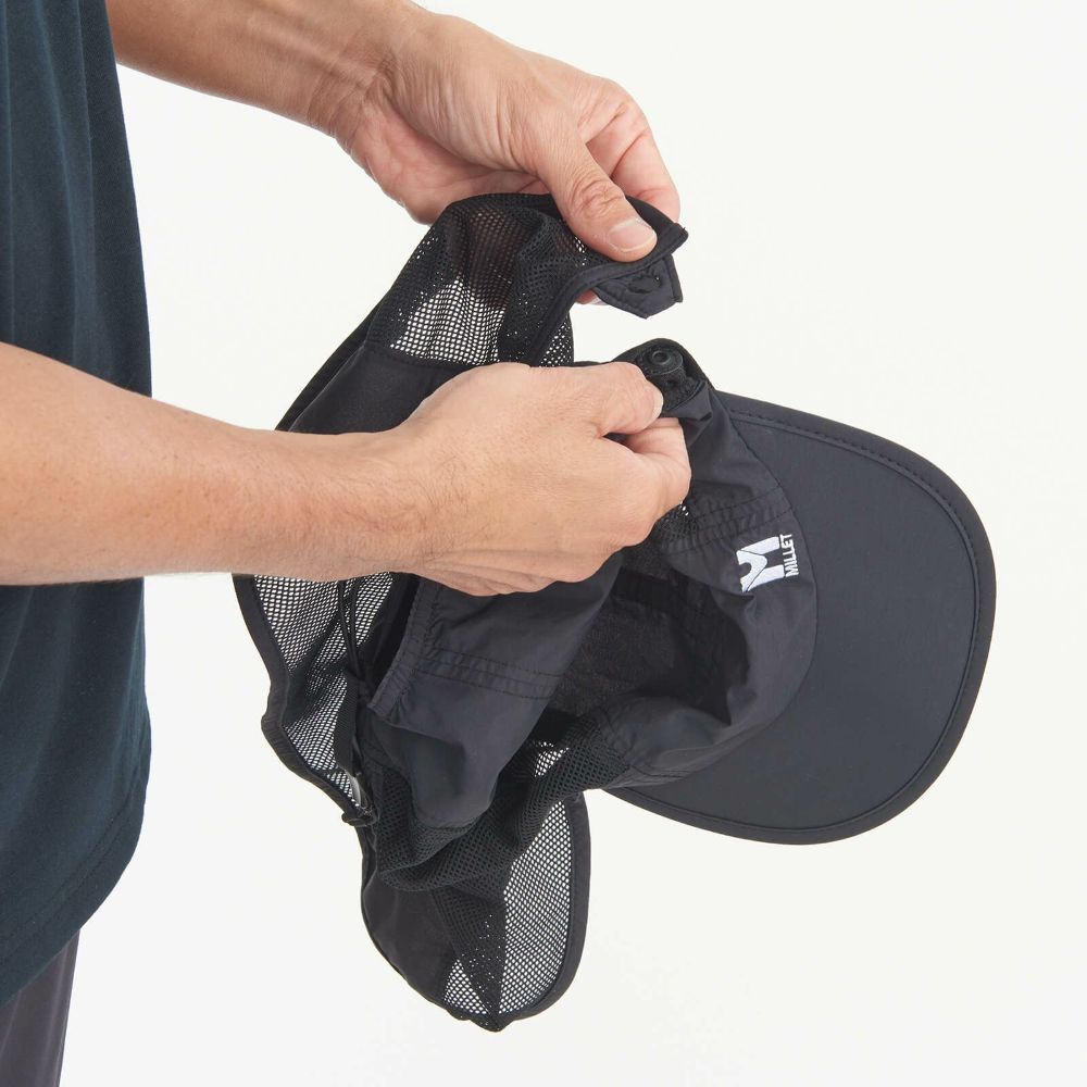 抜群の通気性を備えたメッシュ地と取り外し可能なサンシェードを組み合わせた、真夏のアウトドアに最適なメッシュキャップ。メインの生地はUPF20のUV耐性を備えています。バックアジャストドローコードによってサイズ調節可能。