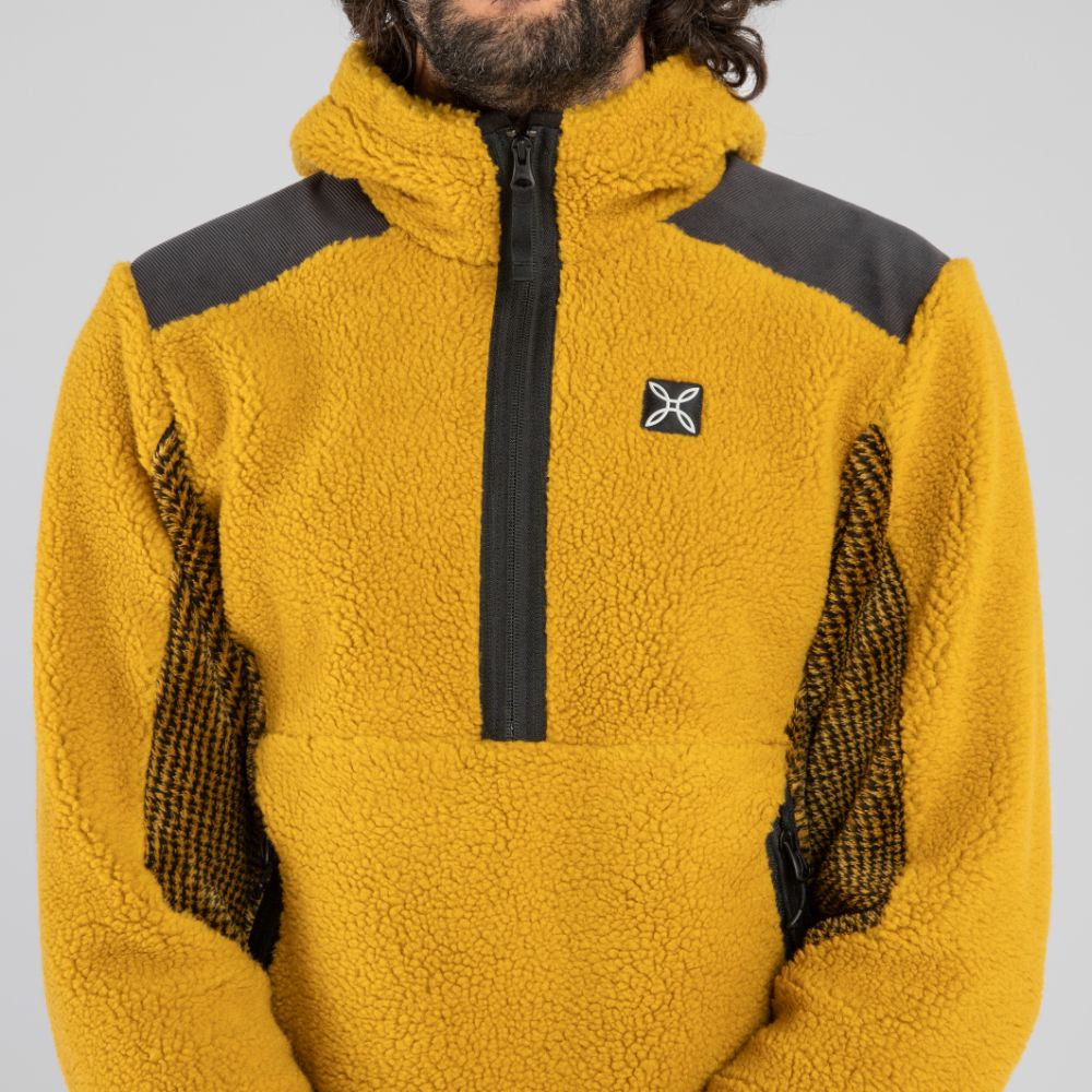 ラムウールを模したリサイクル合成繊維を使用し、保温性と快適性を兼ね備えたこのフード付きアノラックは、気温が上がっても通気性を保ちます。
