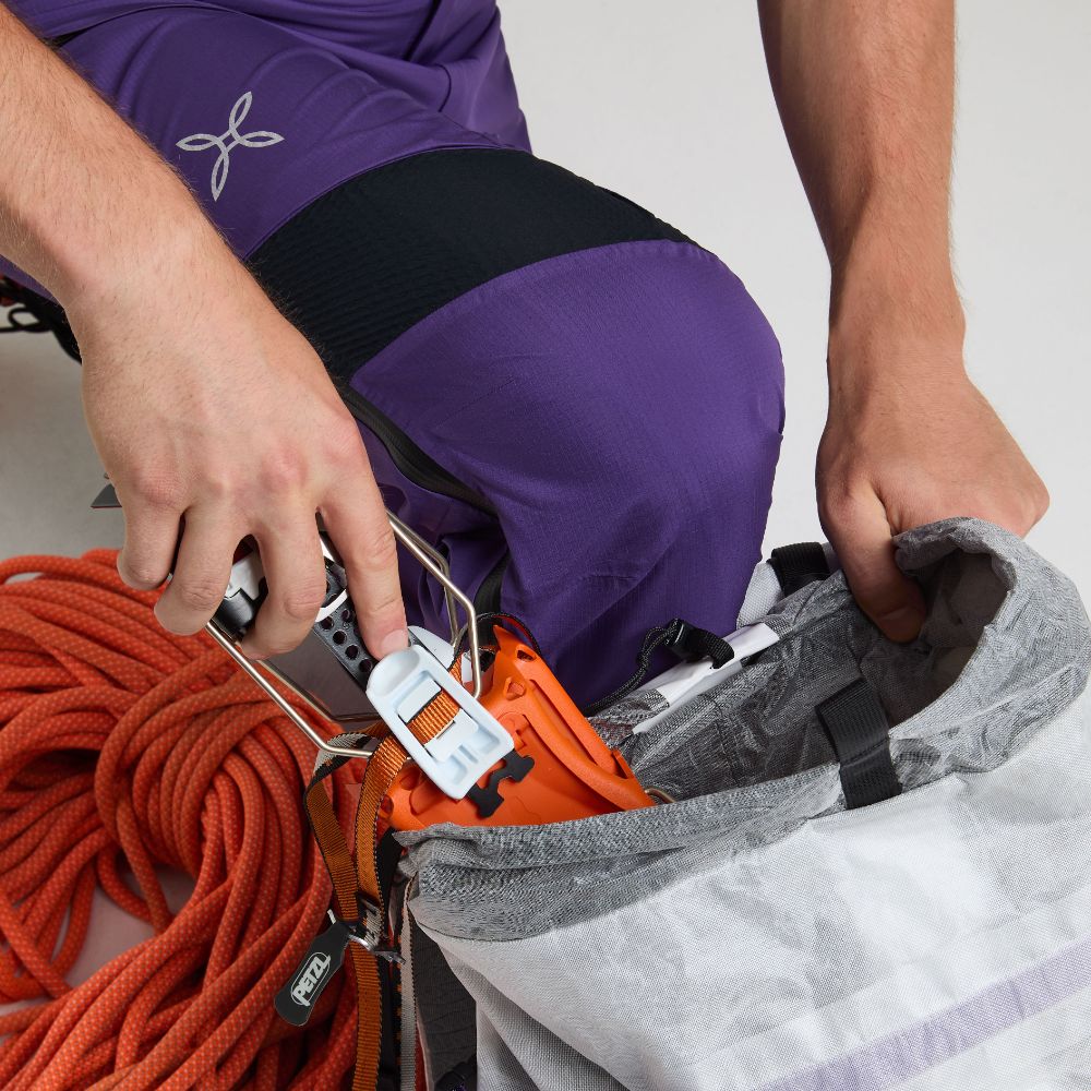 伸縮性のある下腿とマチは汎用性を高め、高地やスキー登山の冒険で大きめのブーツにも対応します。