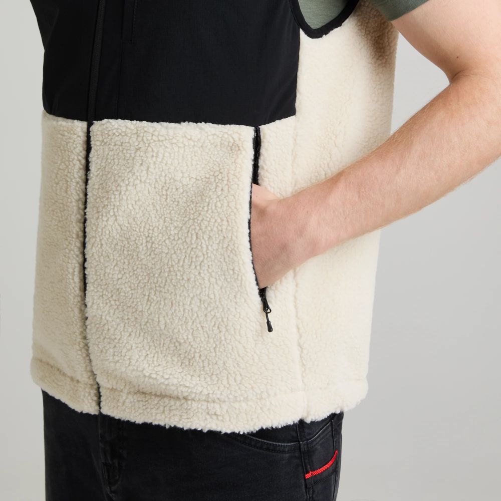 メンズシェルパベストは、屋外での肌寒い日に通気性に優れた快適さを提供します。