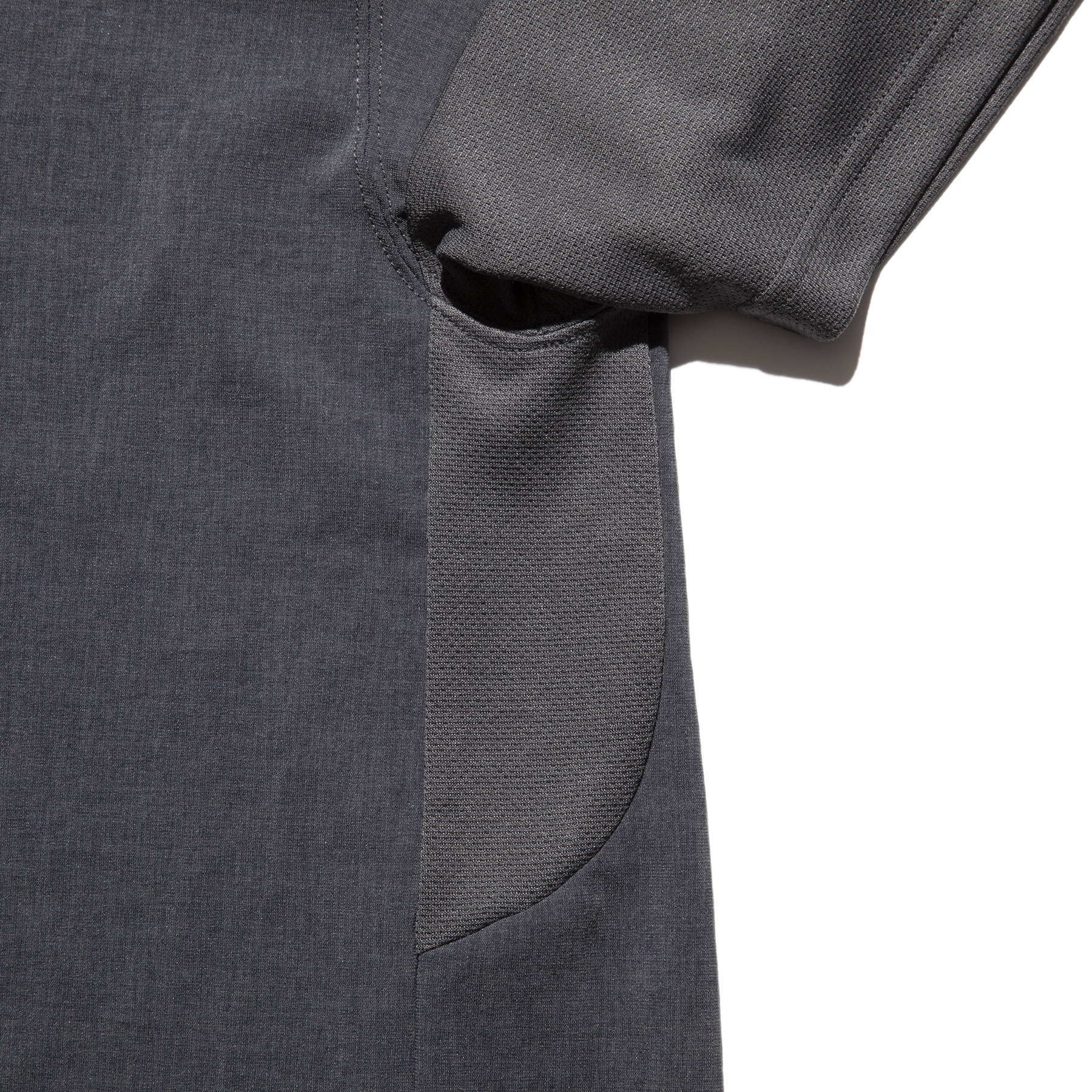 サイドと袖口にはPolartec(R)POWER DRYを使用し、袖から脇部分にパターンを入れることで高い通気性とスムーズな腕上げを実現しました。