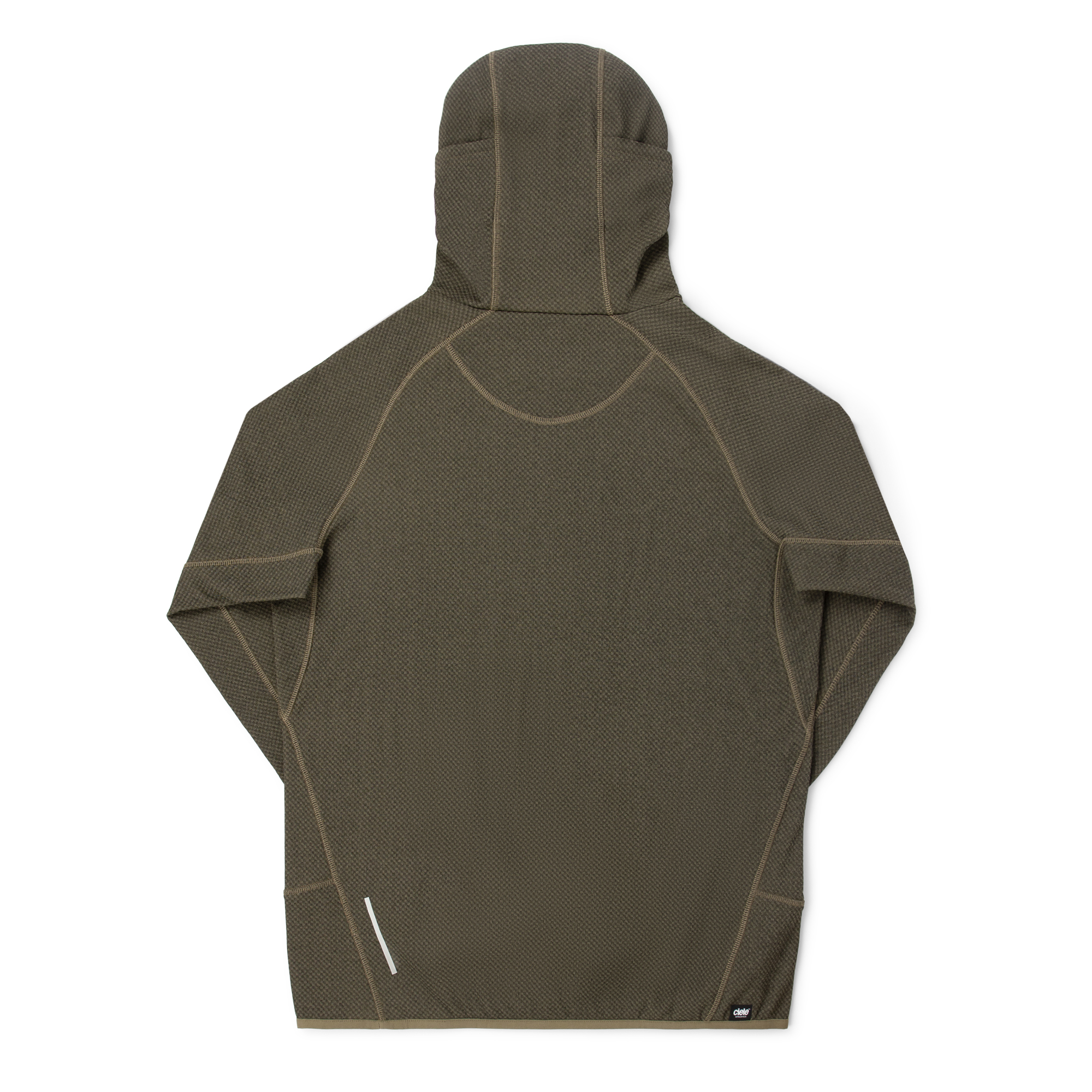 フード一体型でバラクラバにもなり、ハイネックでフルカバー。起毛したCOOLmatic|EXP DIAMAfleece lite素材に編み込まれたカーボン糸が体温調節と防臭効果を発揮し、冬のランニングに最適なレイヤリングアイテムとなる。