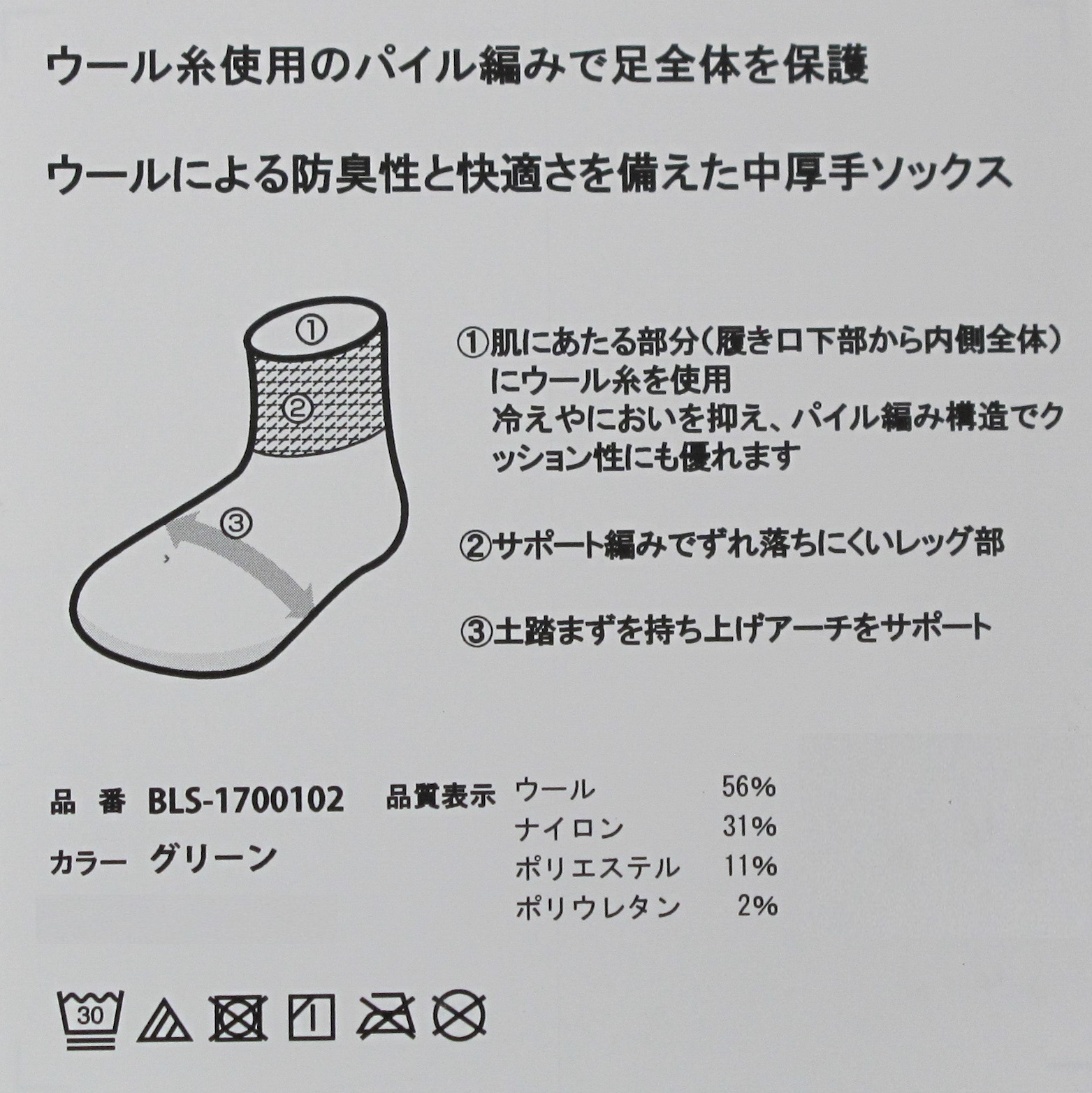 ミディアムクッション オールパイルクルー 中厚手ソックス / BLS-1700102 green