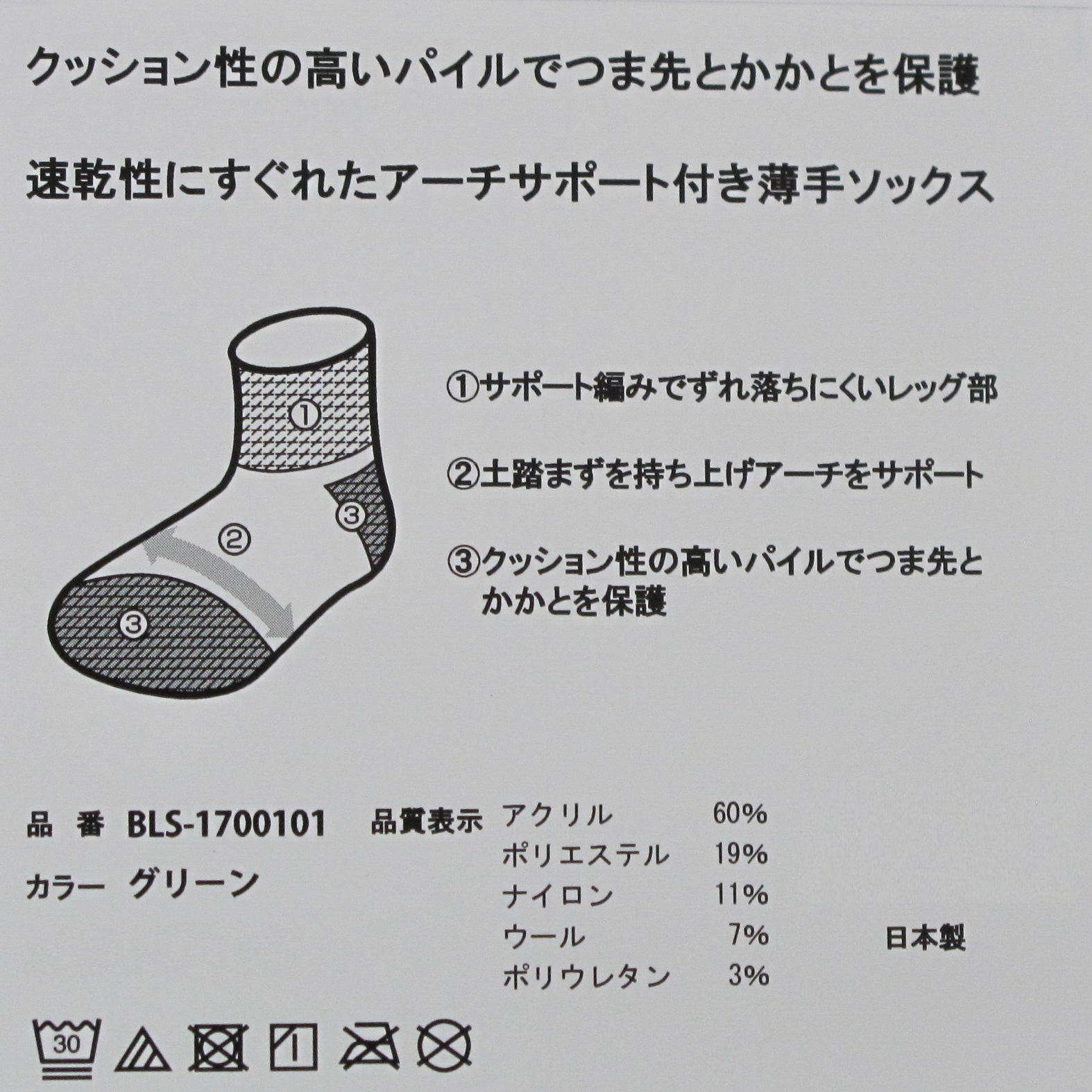 ライトクッション テーパークルー 薄手ソックス / BLS-1700101 green