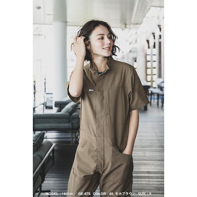グリッドエアーツナギ半袖 4Lサイズ / ブラック GE-675 ツナギ服 メンズツナギ [25SS]