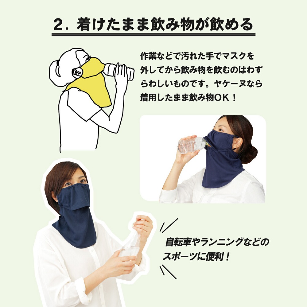 UVカット マスク ヤケーヌ 爽 COOL(スナップ式/鼻芯/打ち水効果) / ブラック 514_BK 爽クール フェイスカバー