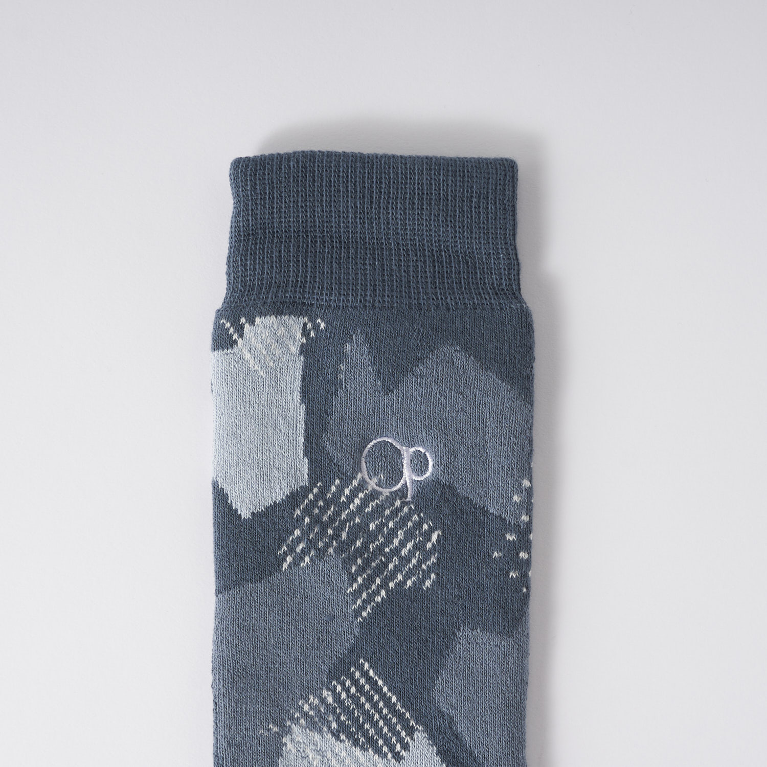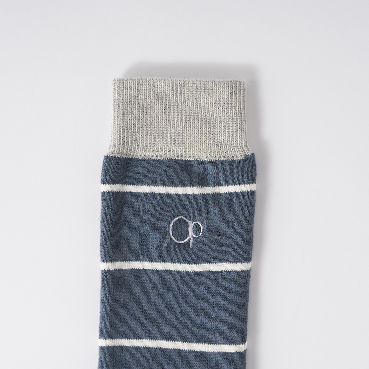 1枚でも重ね履き(紳士) シルクとメリノウール折り返し靴下 / グレー×ブルー N01525-61 ソックス メンズ or レディース