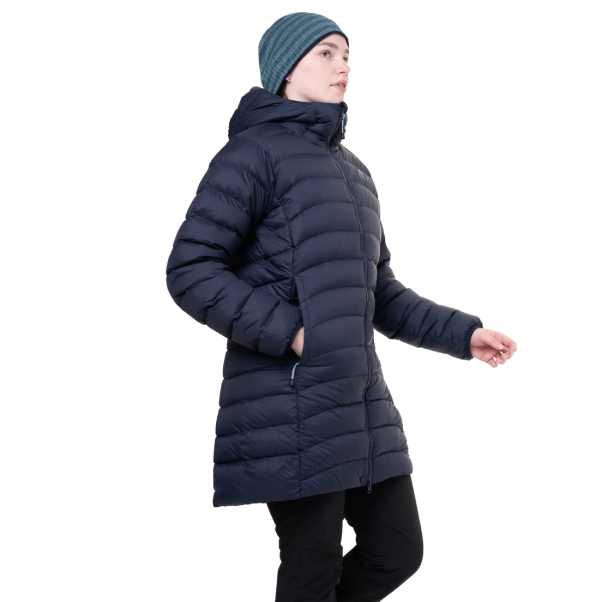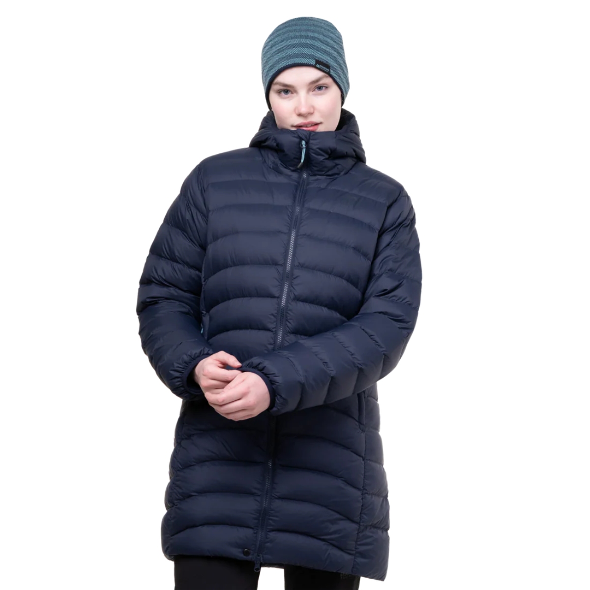 アースライズ・ウィメンズ・パーカは、再生ダックダウンと再生グースダウンを100%使用した、温かく責任あるデザインです。アウターシェルと裏地には100%リサイクル素材を使用しています。
