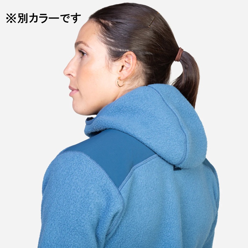 肩と肘には、耐久性と耐候性に優れたソフトシェル素材のオーバーレイを施し、初期のフリーススタイルへのオマージュを捧げ、摩耗やヘタリやすい部分を補強しています。ジッパー付きハンドウォーマーポケットは凍えた指を温め、ぴったりとしたフードは風の強い高原でさらなる保護力を発揮します。