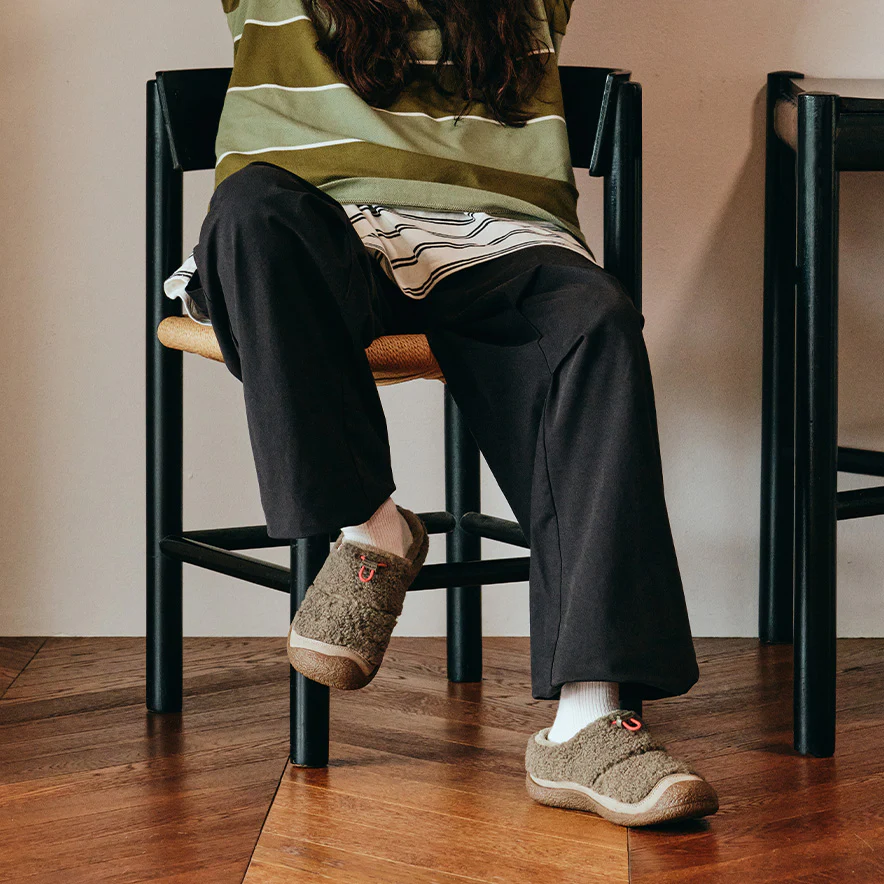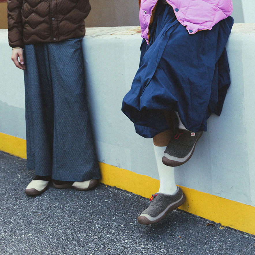 リラックスシューズの進化形。楽で、暖かく、洋服とも似合う、どんな時もゆったりした流れをもたらす地球と共に歩むエコプロダクツ。脱ぎ履きが容易でコンフォートなフィット感、KEENならではのバンジーシューレースを搭載したクロッグデザインタイプのアップデートバージョン。普段履きはもちろんの事、オフィスシューズ、ルームシューズとしても活躍します。
