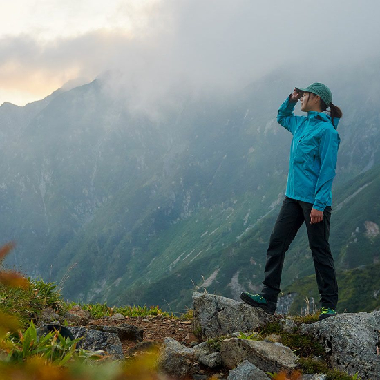 一般的なレインウエアと比較し、雨中の透湿性に大きな優位性を備え、降り続く雨の中の長時間行動を支えます。