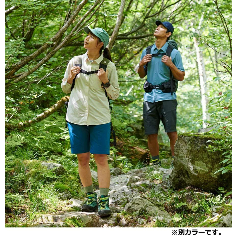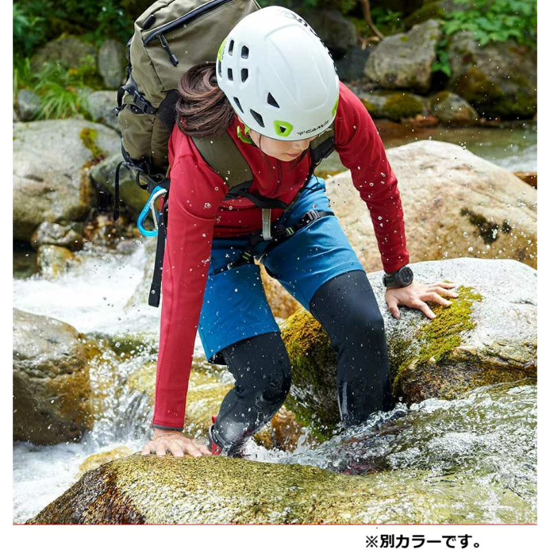 タテヨコに伸びて岩場や沢中などでの大きなアクションでもストレスフリーの動きやすさを備えます。