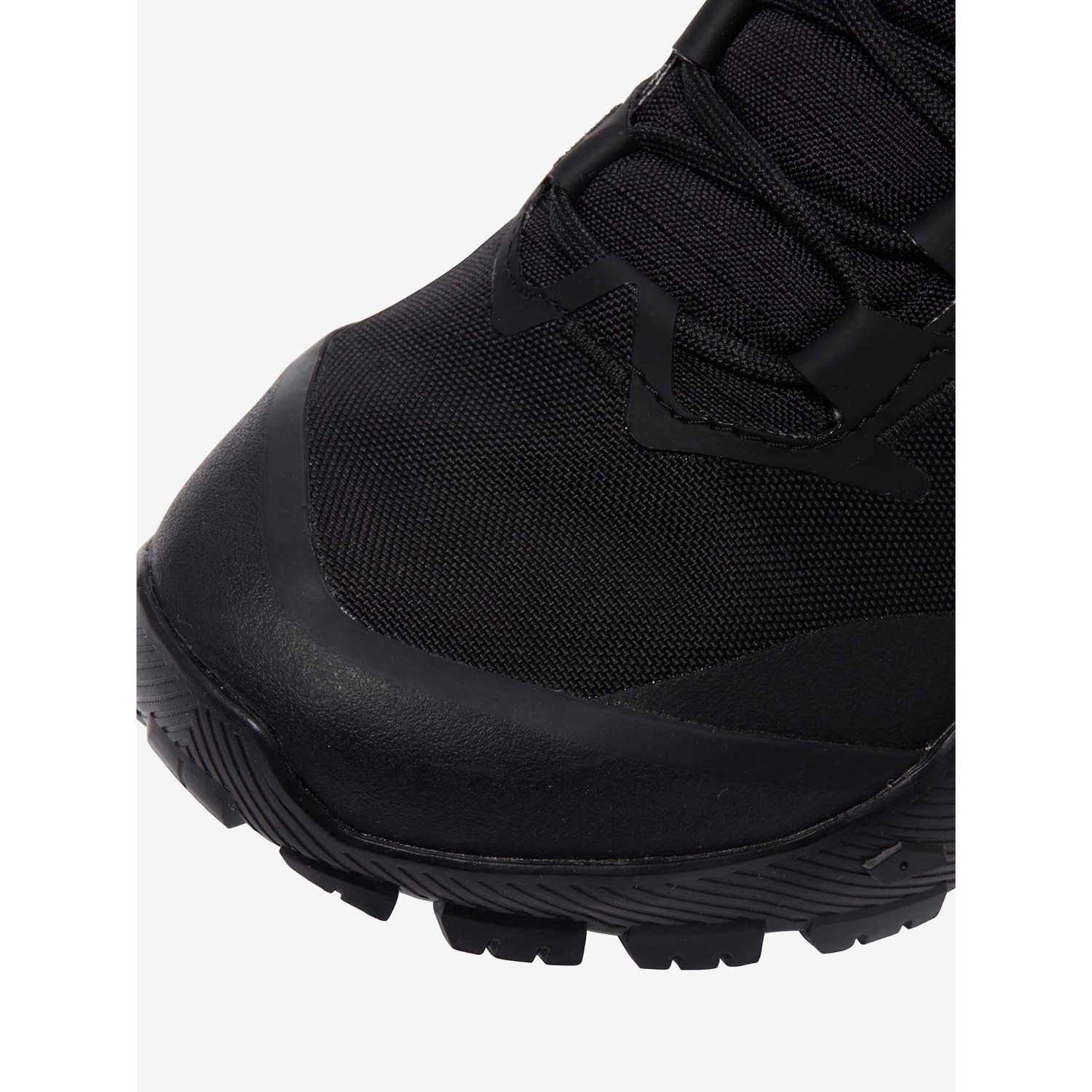 前足部のアッパー素材に、高い耐久性を誇る「CORDURAリップストップナイロン」を採用。さらに、前足部の両側のラバーを巻き上げたラバーラップ構造で、耐久性と安定感を高めています。岩場などでつま先を保護するため、ラバートゥキャップを装備。防水透湿素材に「GORE-TEX」を使用して、雨天やぬかるみでも快適に行動できます。