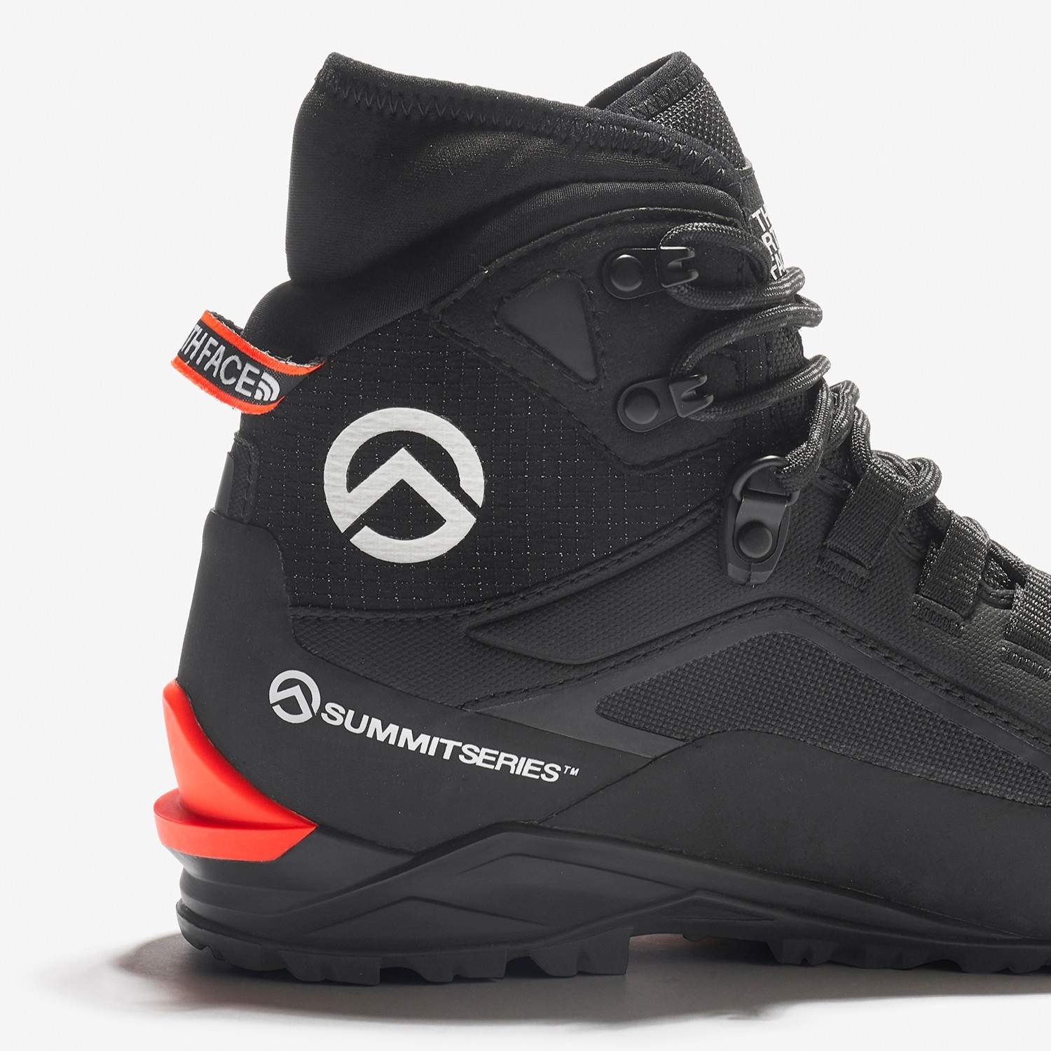 W Summit Breithorn FL 軽量性を追求した、セミワンタッチアイゼン装着可能な3シーズン対応縦走登山向けのアルパインブーツです。岩稜帯やトレイルでの摩耗に対応する高強度のリップストップファブリックをアッパーに採用。防水メンブレンには、ナノレベルのポリウレタン繊維をミクロ単位で吹き重ねてシート状にした、THE NORTH FACE独自開発のナノフィルム状防水通気素材「FUTURELIGHT」を使用しています。フィット性に影響するシューホールを面で押さえるウェビングテープにし、くるぶし部をロッキングアイレットで構成することで、長時間歩行時のフィット感の緩みを軽減。ソールには、軽量性と摩耗耐久性を両立するヴィブラム社のLITEBASE MONTコンパウンドラバーを使用。薄く軽量なソール材ながら、重登山靴に匹敵する磨耗耐久性を実現しています。また、フットベッドにはグラスファイバーシャンクプレートを装備し、軽量性と剛性を両立しながら歩行時の安定性を高めています。履き口には、ストレッチ性を持つライクラ素材を配し、包み込むようなフィット感と共に、砂利などの侵入を軽減します。ウィメンズラストを使用した軽量性、剛性、耐久性のバランスに優れる汎用性の高いテクニカルブーツです。