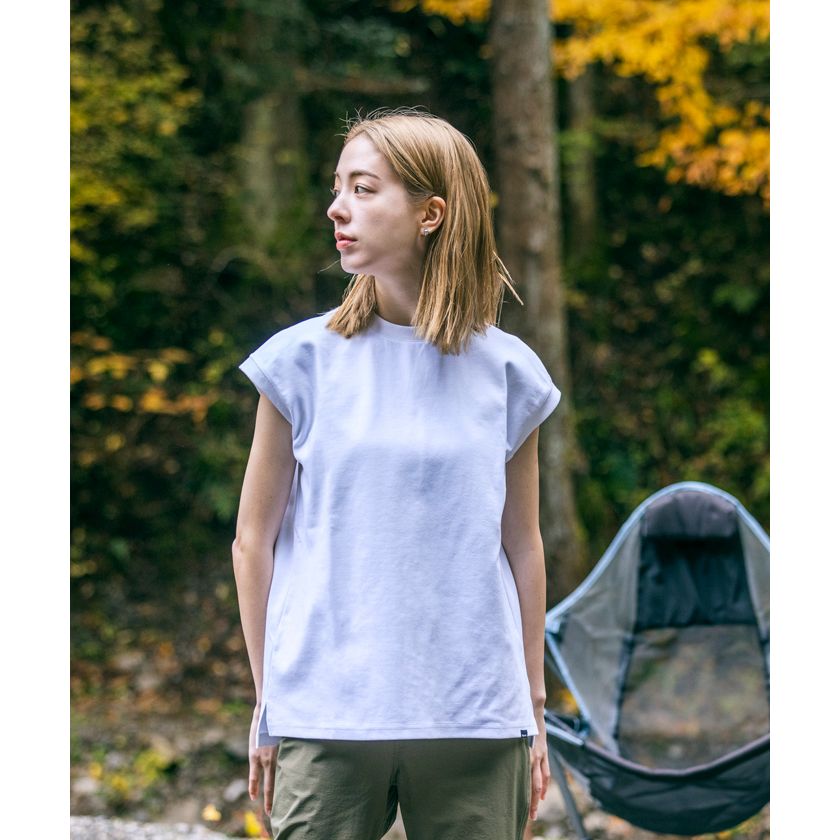 型崩れしにくく、裏面がスムースな肌当たりで快適に着用できる、ノースリーブの無地Tシャツです。