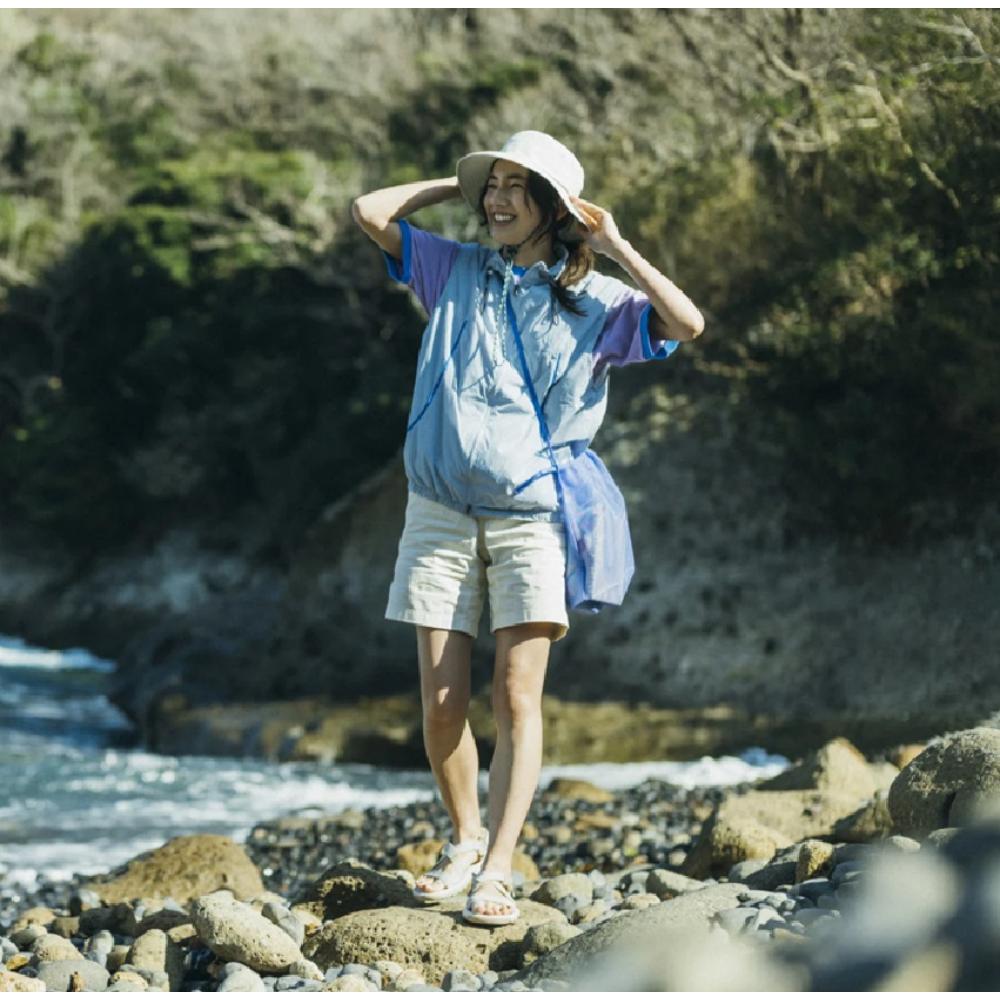 ・100%再生ポリエステルウェビング、65%再生ポリエステルストラップ(親指部分)、35%再生EVAトップソール、30%再生ミッドソール