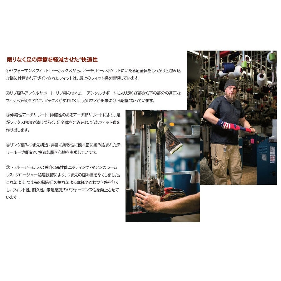 非常に柔軟性に優れ密に編み込まれたテリーループ構造で、つま先部分をシームレス化し、快適な履き心地を実現