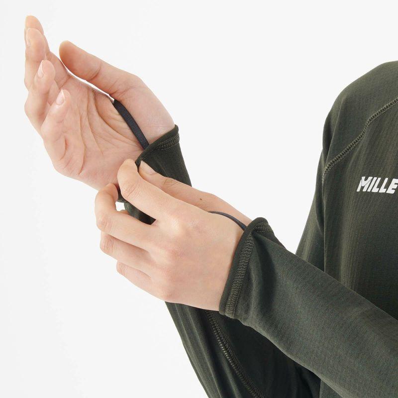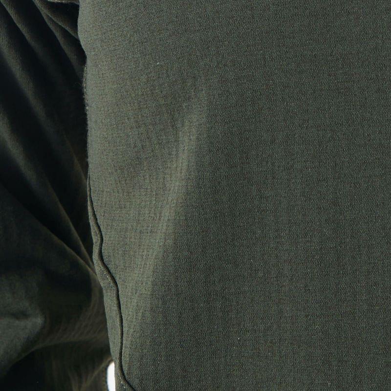 秋冬での優れた吸汗速乾性とドライ感、適度な保温性を兼ね備えた高機能ハーフジップ。肌面には水を含まないポリプロピレン素材のグリッド構造、表面には速乾性に優れたポリエステルを組み合わせた立体的なハイブリッド構造のドライグリッド素材を採用。低温下での発汗量の多いアクティビティで常に肌面をドライに保ちつつ、非常に高い吸汗速乾性を実現しました。他にも発汗時の換気性を高める長めのフロントハーフジップや肩回りの動きやすさを考慮したラグラン袖のカッティング、袖のずり上がりを防ぐサムループなど、冬のアクティブなシーンを細部まで考慮した作りになっています。