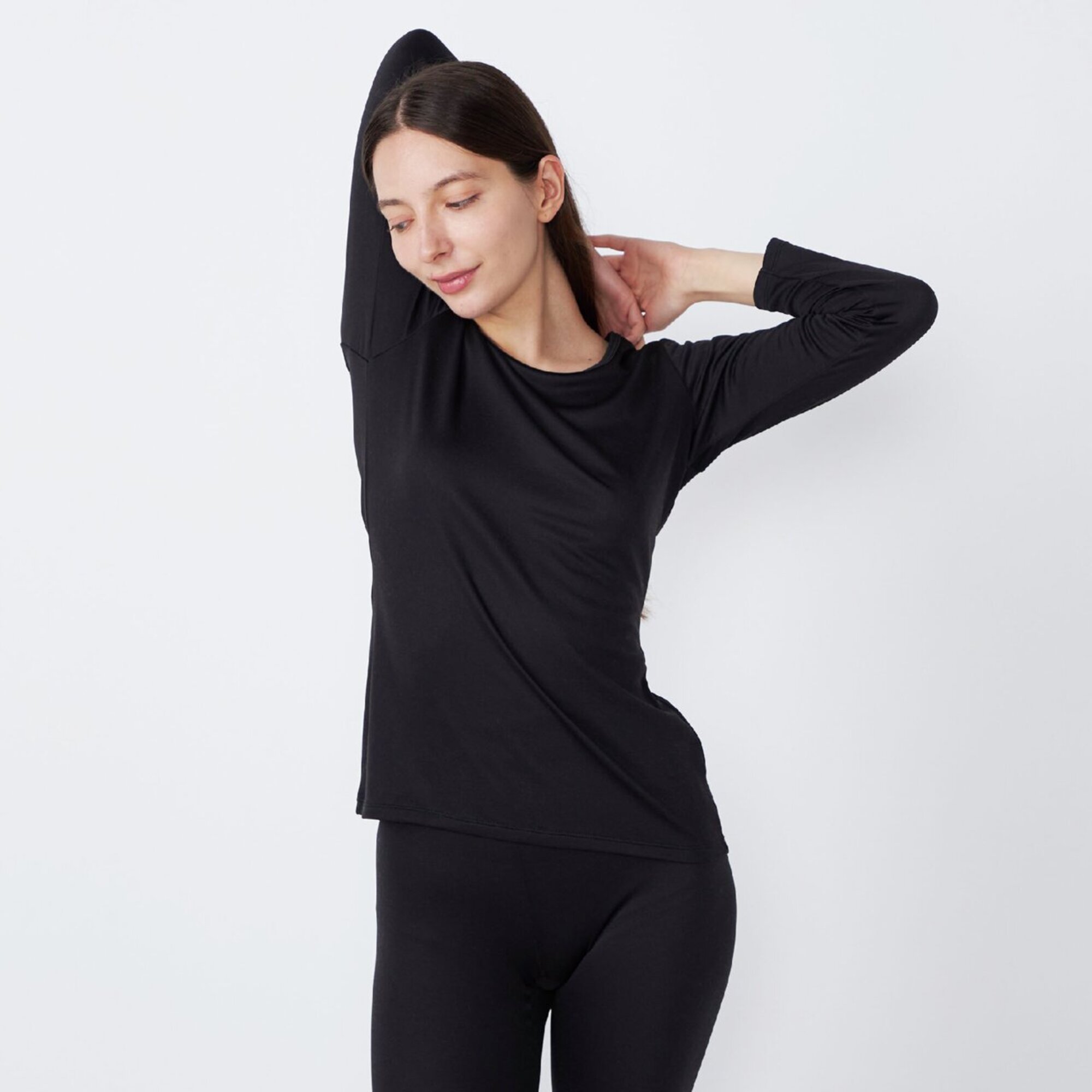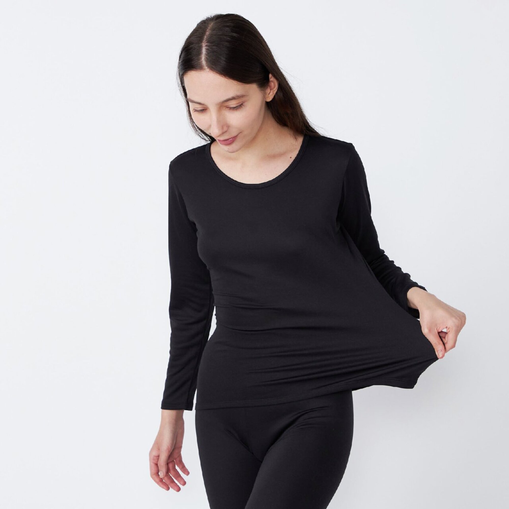 【吸湿発熱】ミズノプレミアホットインナー ブレスサーモ Dailyモデル 薄手 クルーネック9分袖シャツ(ウィメンズ) / C2JAC8K2 09:ブラック [25FW]