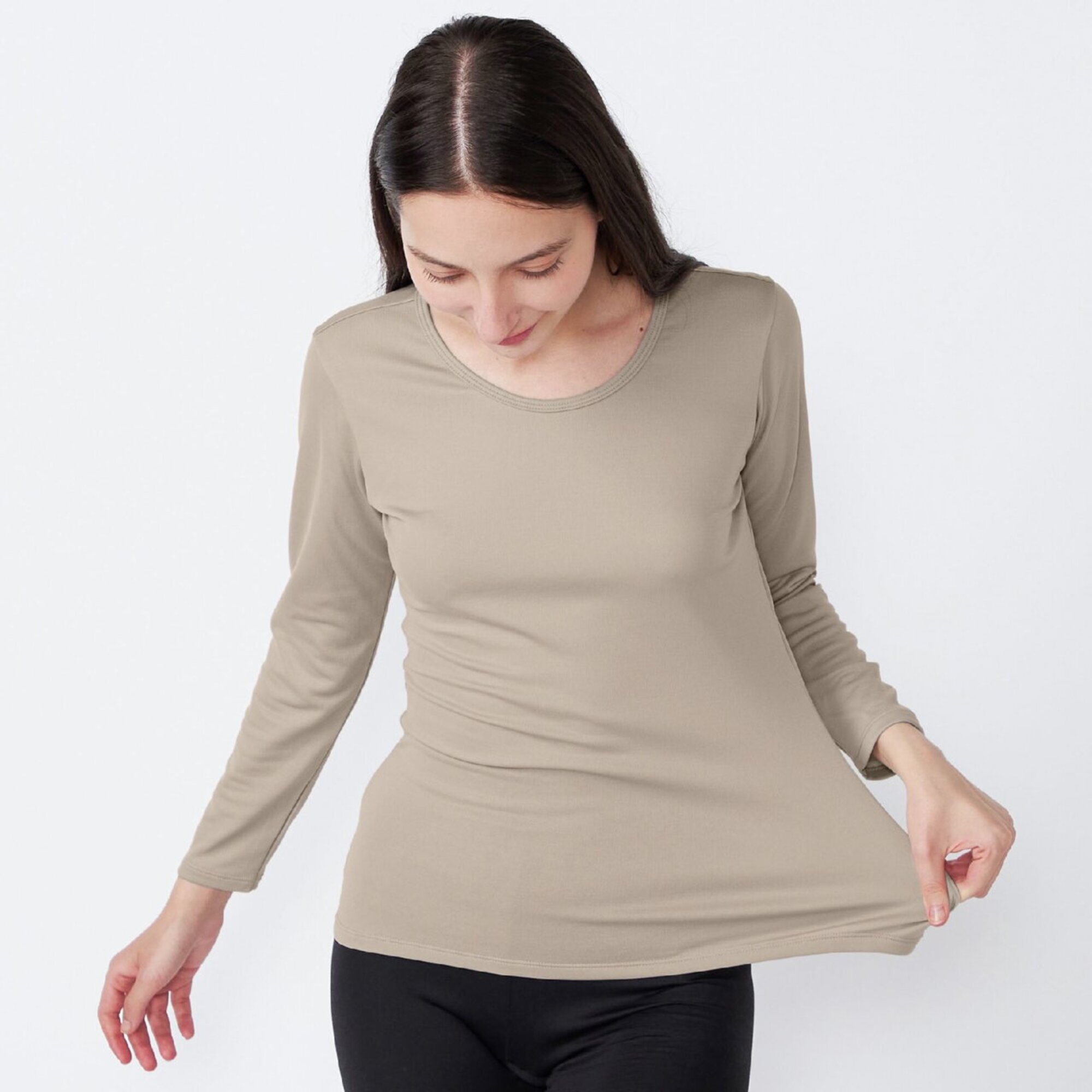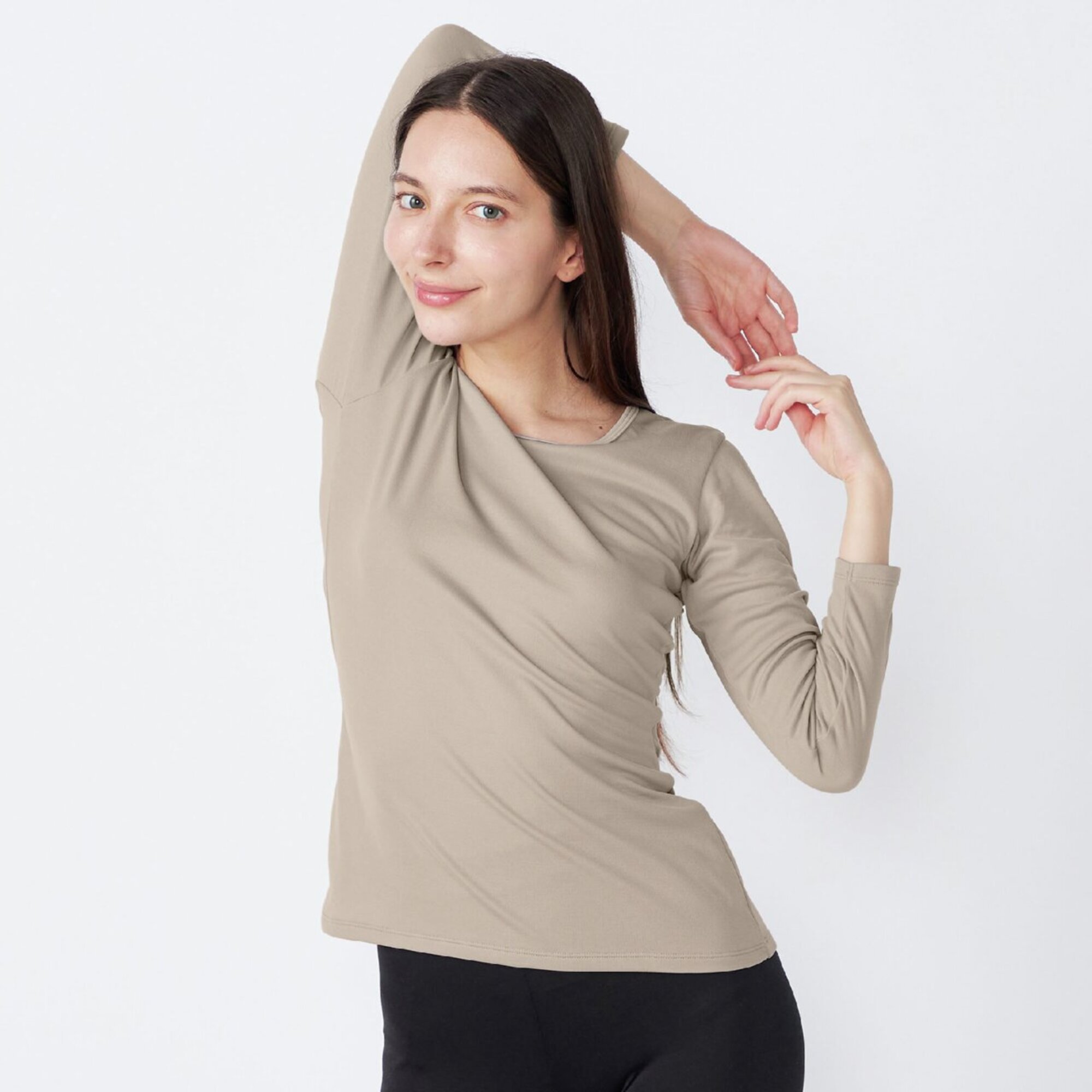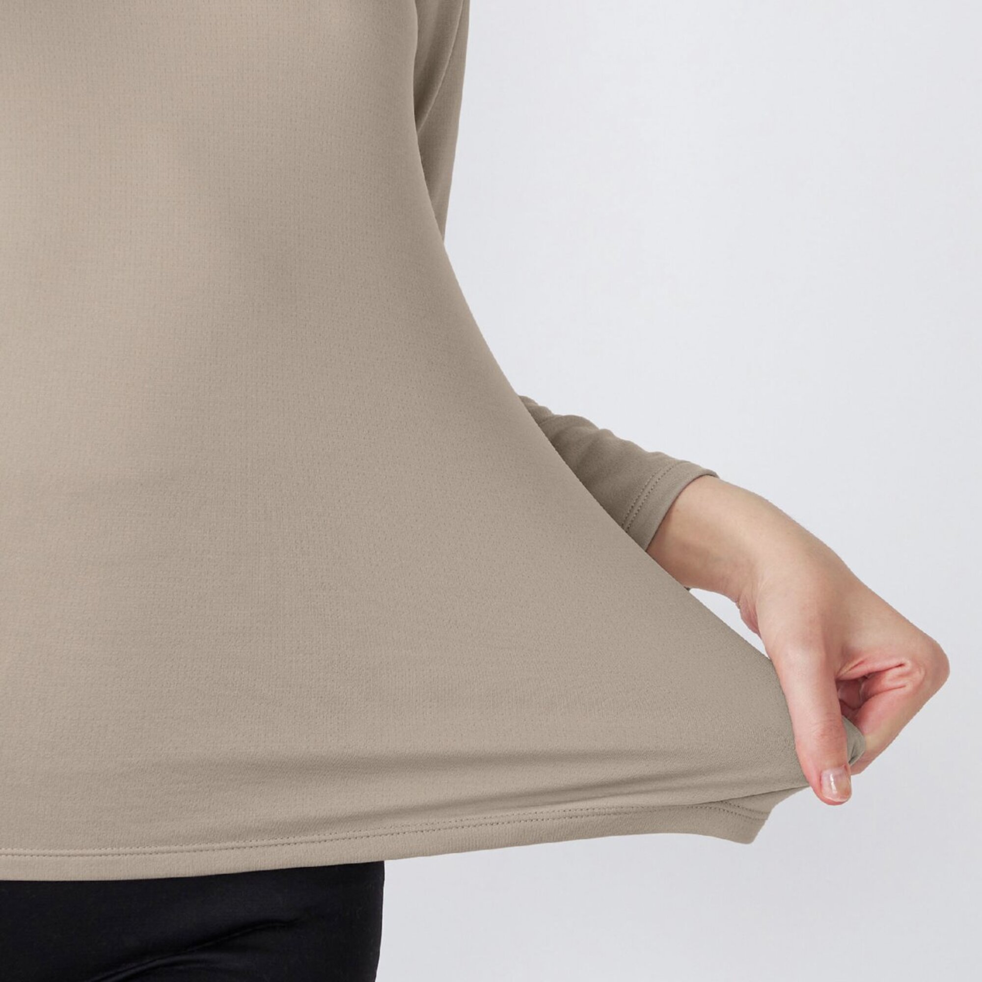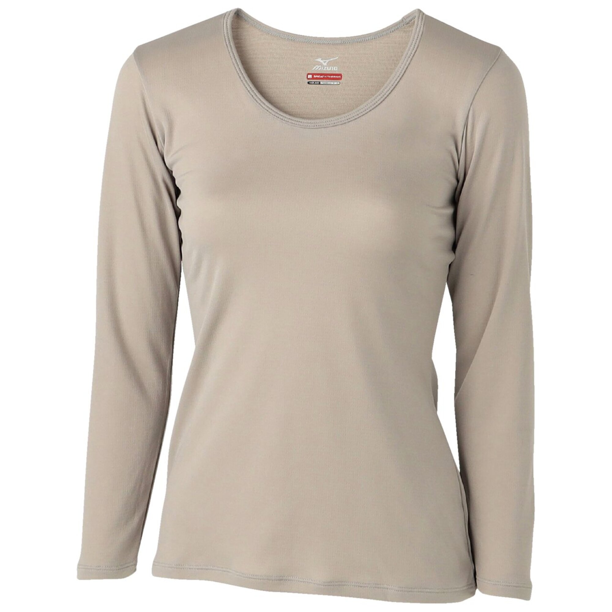 【吸湿発熱】ミズノプレミアホットインナー ブレスサーモ Dailyモデル 薄手 クルーネック9分袖シャツ(ウィメンズ) / C2JAC8K2 47:グレージュ [25FW]