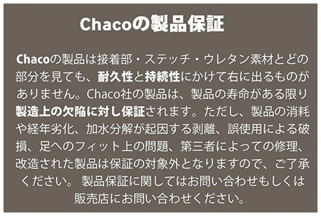 ※Chacoのサイズは1cm刻みとなっております。0.5cmサイズの設定はありませんので、1サイズ大きめのサンダルをお勧めしています。お買い求めの際には、フィッティングの上お選びください。