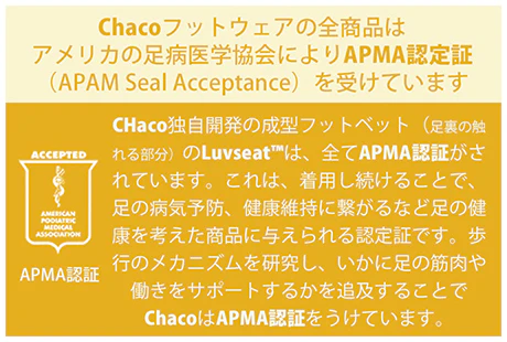 Chacoサンダルの全ラインナップに採用している、Chacoが独自成型したフットベット(足裏の触れる部分)とミッドソール(ソールとフットベットの中間部)のこと。踵や足裏は歩行中、常に動いているためヒールカップによりフットベット上で安定させます。そして、土踏まず部分に成型されたアーチサポートに正しくフィットすることにより、普段使いにくい土踏まず、足指等の歩行における正しい筋肉の動きを促し、足裏の骨格と筋肉のバランスを整え1日中快適にサポートします。