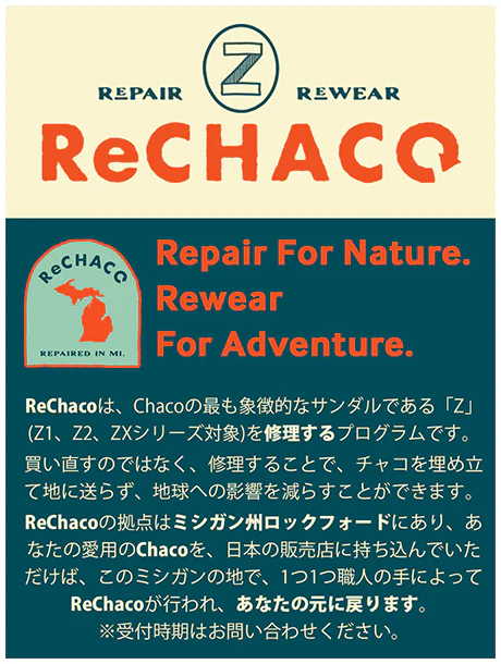 アウトソールには高いトラクション性、グリップ性のあるCHACO(チャコ)独自に開発したCHACOGRIPを採用しています。