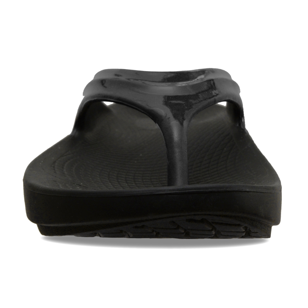 OOFOS(R) は市場のEVA 製の安価なビーチサンダルとは異なり、無害な原料、塗料を使用した特許取得の高密度なフットベッド(靴裏)で、とても快適な履き心地を体験できます。