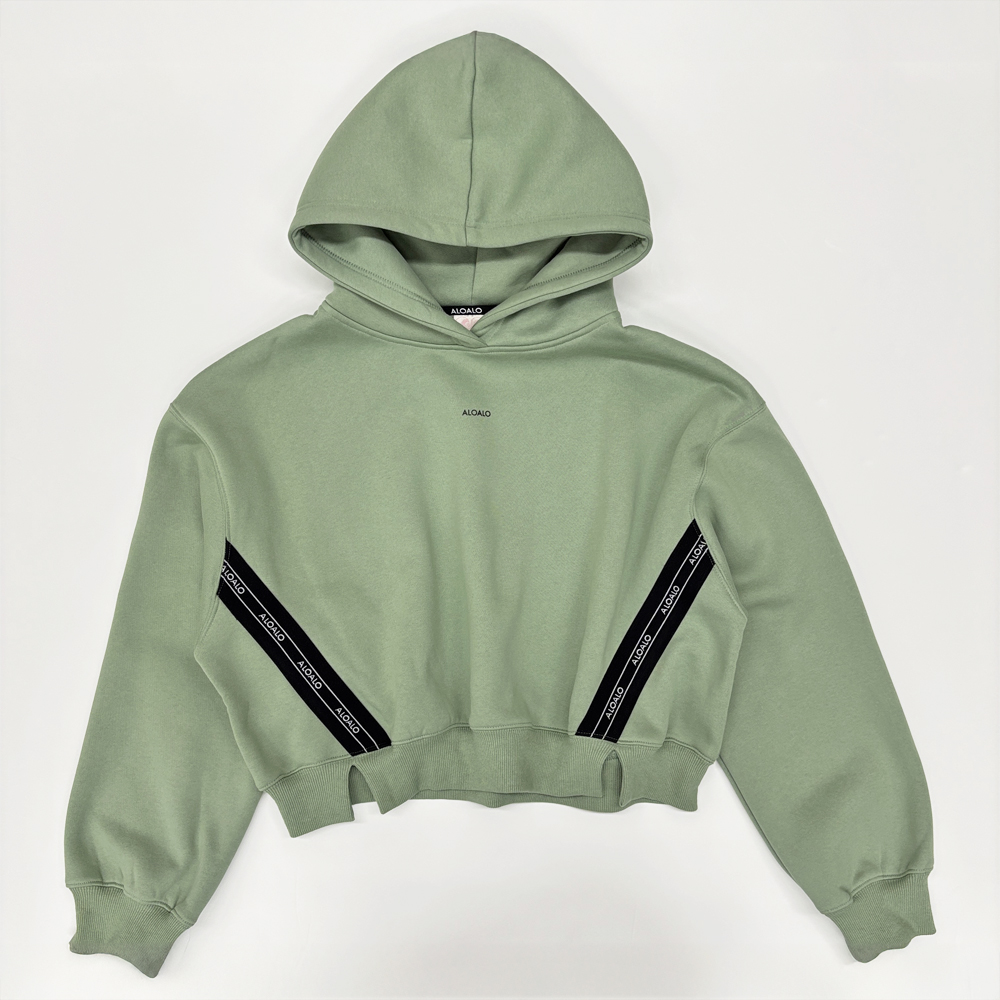 - サイドのALOALOロゴテープがポイントのクロップド丈のフーディ。