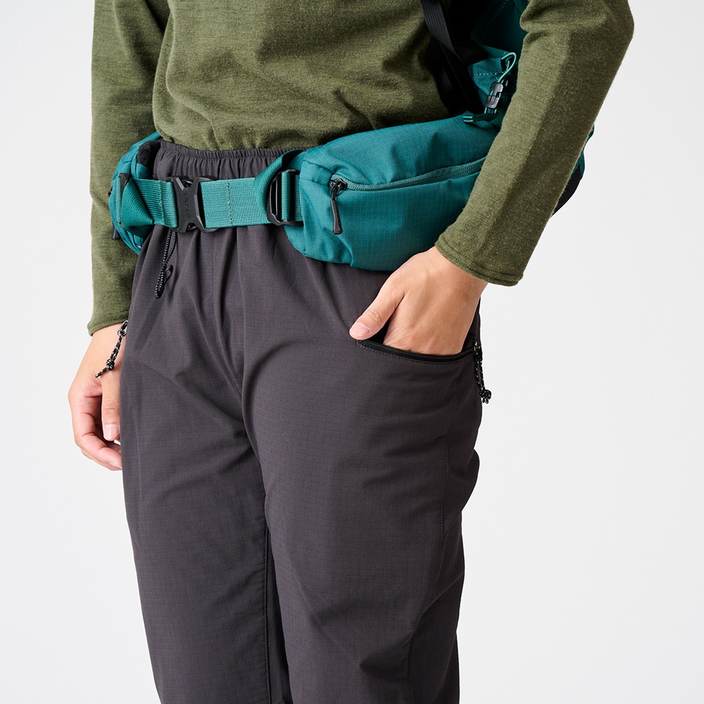 また、シンプルなサイドポケットはバックパックのヒップベルトに干渉しないのでアクセスにストレスを感じません。