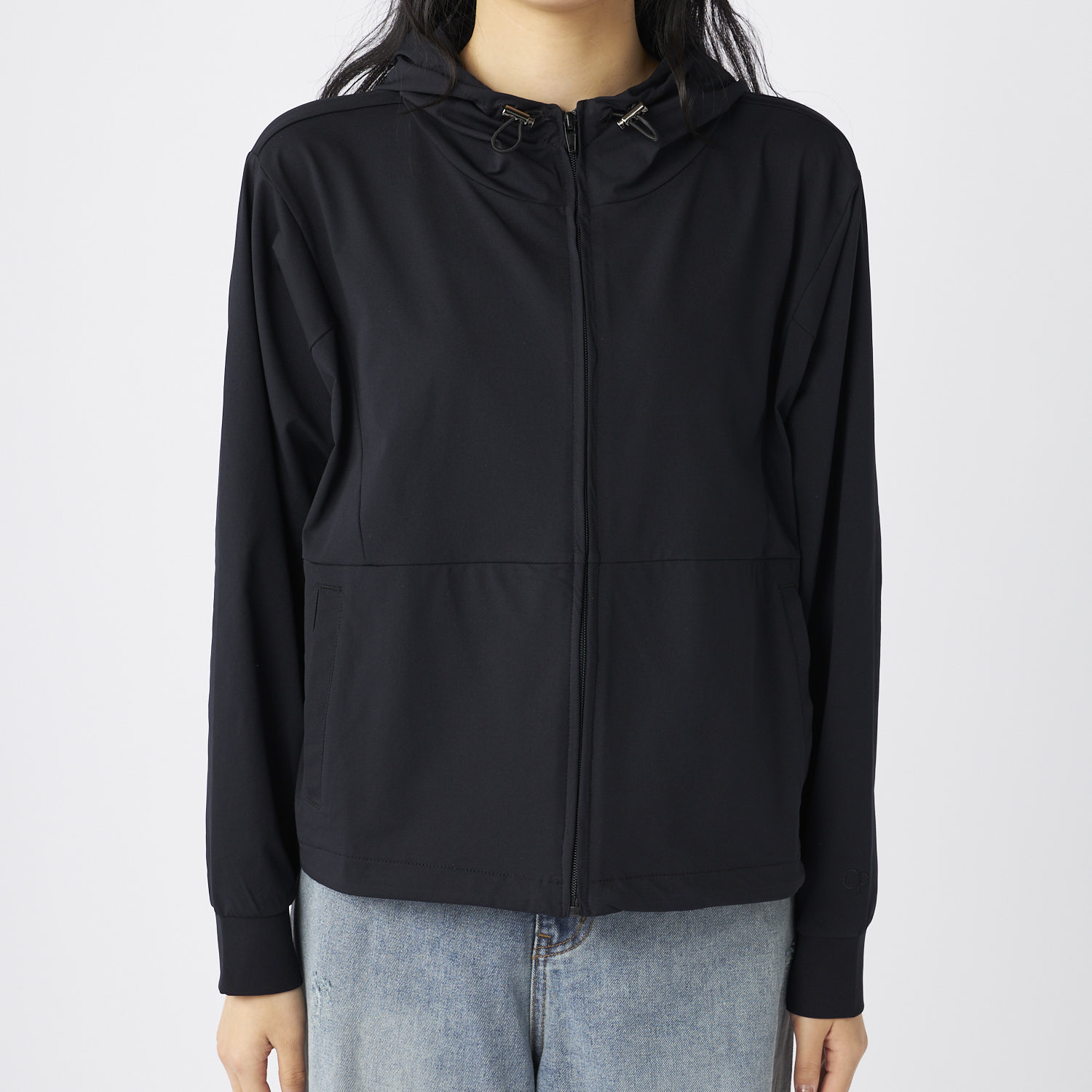 - 綿ライクなポリエステル100%の機能素材を使ったUVパーカー。首元やフードの立体感、見頃や袖の切り替えで、シンプルな中にもデザイン性をプラス。裾にはドローコード付きで、丈感を調整していただけます。