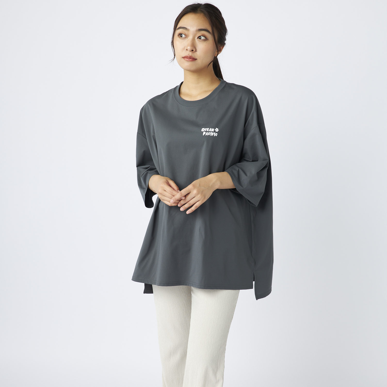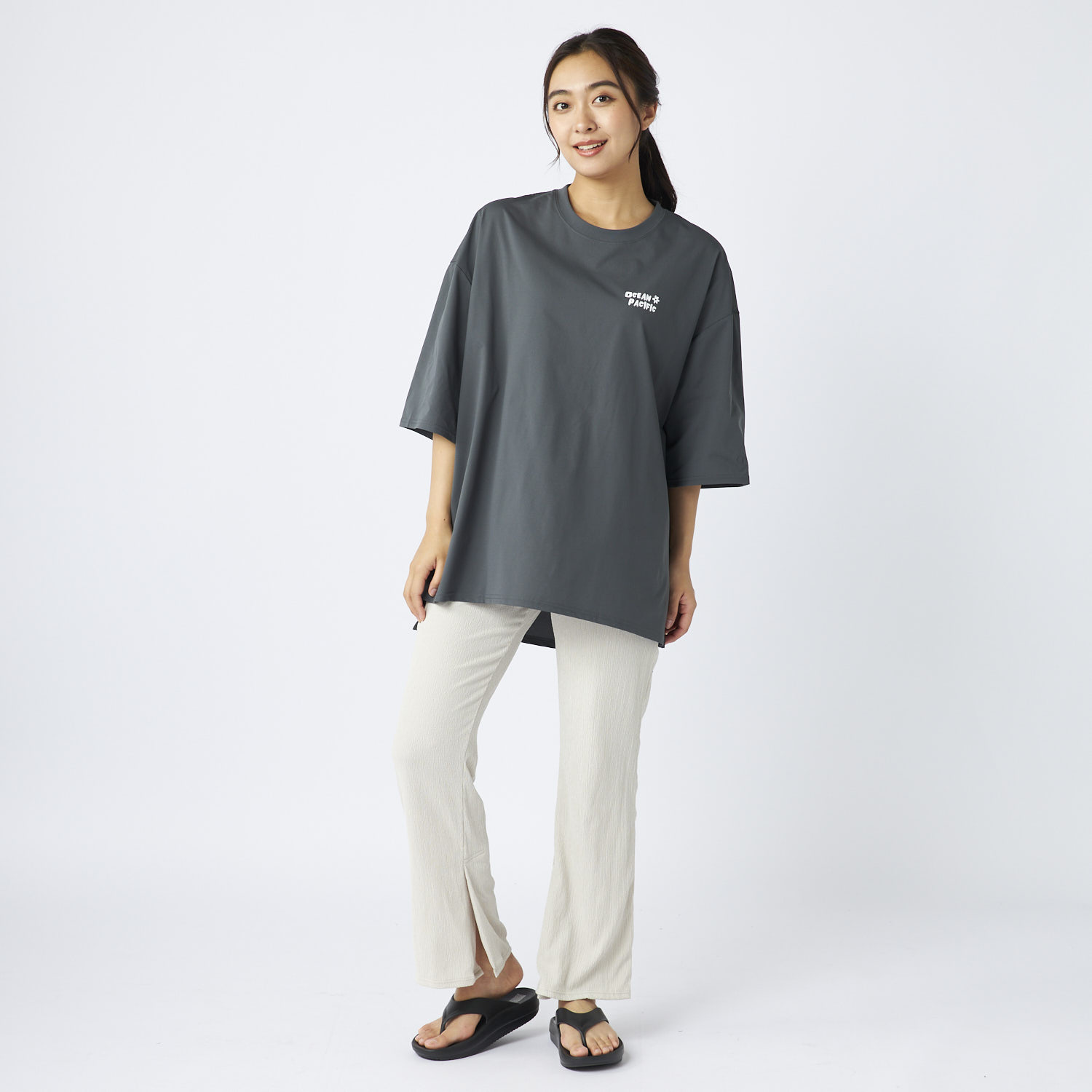 - 綿ライクなポリエステル100%の機能素材を使ったUVTシャツ。バックプリントはサーフブランドらしい長めの袖丈とワイドな身幅で体型カバーもできます。裾にはドローコード付きで、丈感を調整していただけます。