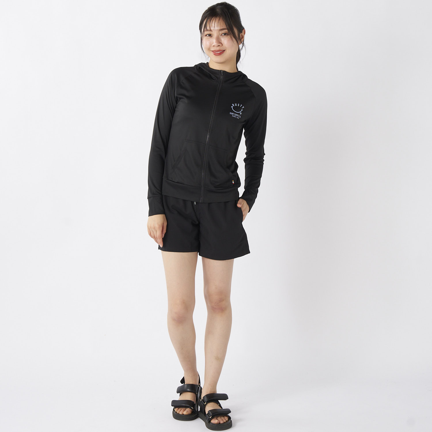 - 指穴のサムホール付きで、袖が捲れ上がるのを防ぐほか、手の甲まで覆うことで防寒効果も期待できます。フードタイプでまでしっかりと日除けでき、フードを被れば顔まわりや頭もガードできる。ジップタイプで着脱しやすく水着の上から、Tシャツなどの上からもUV対策として使える。胸フロントプリントとバックロゴにもニコちゃんが入っていてキュートなデザインです。カンガルーポケット付きなのも便利!夏にぴったりなカラバリ豊富なラッシュガード!そしてラグランスリーブならではの特徴で、肩幅が気になる方も着やすいデザインに。ラグランスリーブは肩の部分に縫い目がないため、気になる肩幅も綺麗なシルエットに見せてくれます。ボードショーツや水着の上から羽織るのはもちろん、川遊びやアウトドア、レジャーで撥水パンツやカジュアルウェアにも合わせれます。