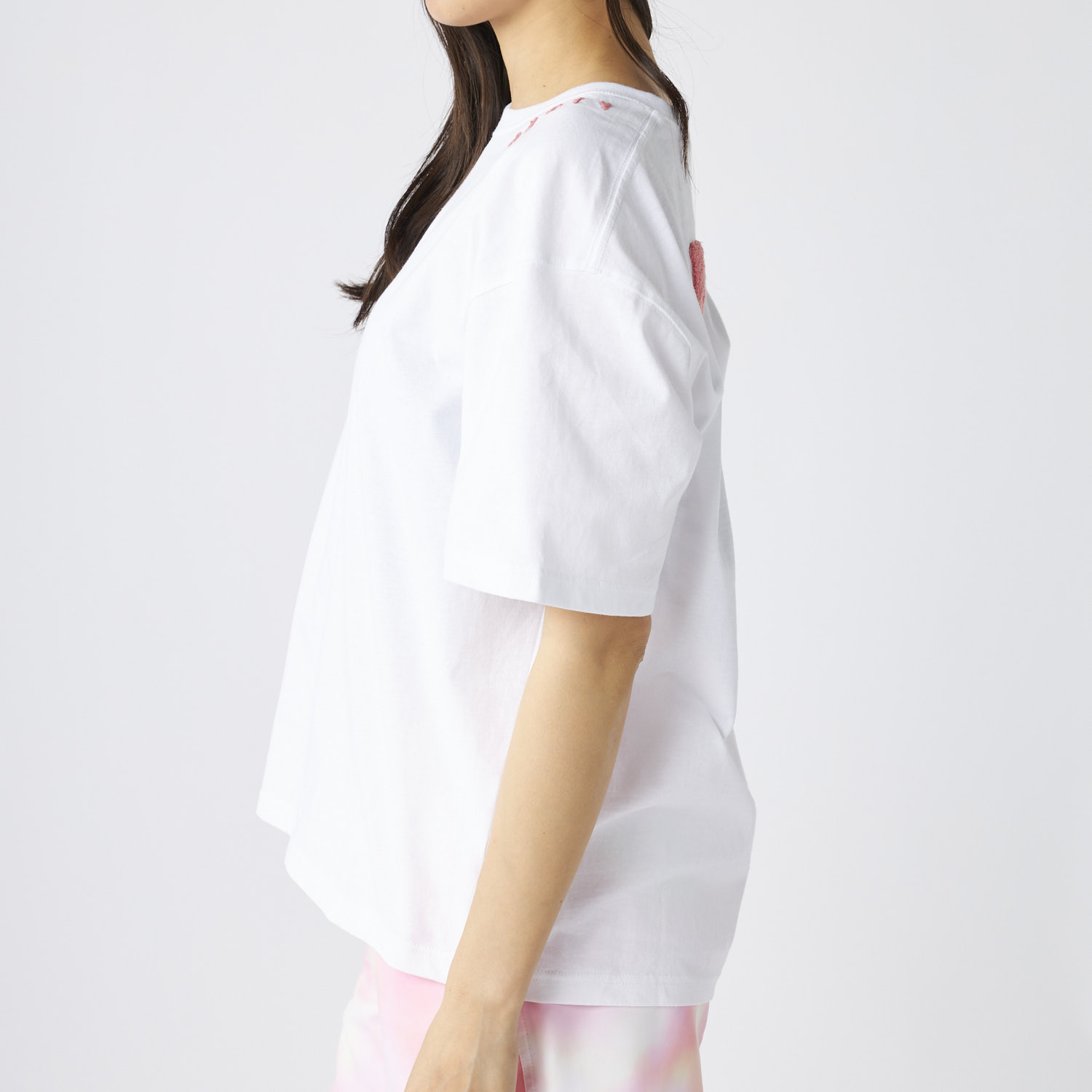 - フロントの首元にラウンドにさりげないチェーン刺繍のロゴが入っているのがポイント! バックプリントは定番の大人気ニコちゃん相良刺繍! 脇にはピスネームもついていてさりげなくおしゃれに! トップスをインもしやすいシルエットのTシャツです。 綿100%のTシャツは通気性が良く、吸水性が高いため、水分を吸収して外に放出してくれるのでお肌が弱い方にも夏はおすすめ。そして涼しい! また、静電気が起きにくく、肌触りがとてもよく、綿はとても微細な繊維のために、肌への引っかかりが少なく肌に優しい素材です。 また、生地の強度が強いため、洗濯をしても素材が痛みにくく長く使えます。