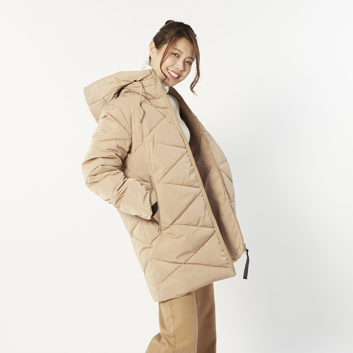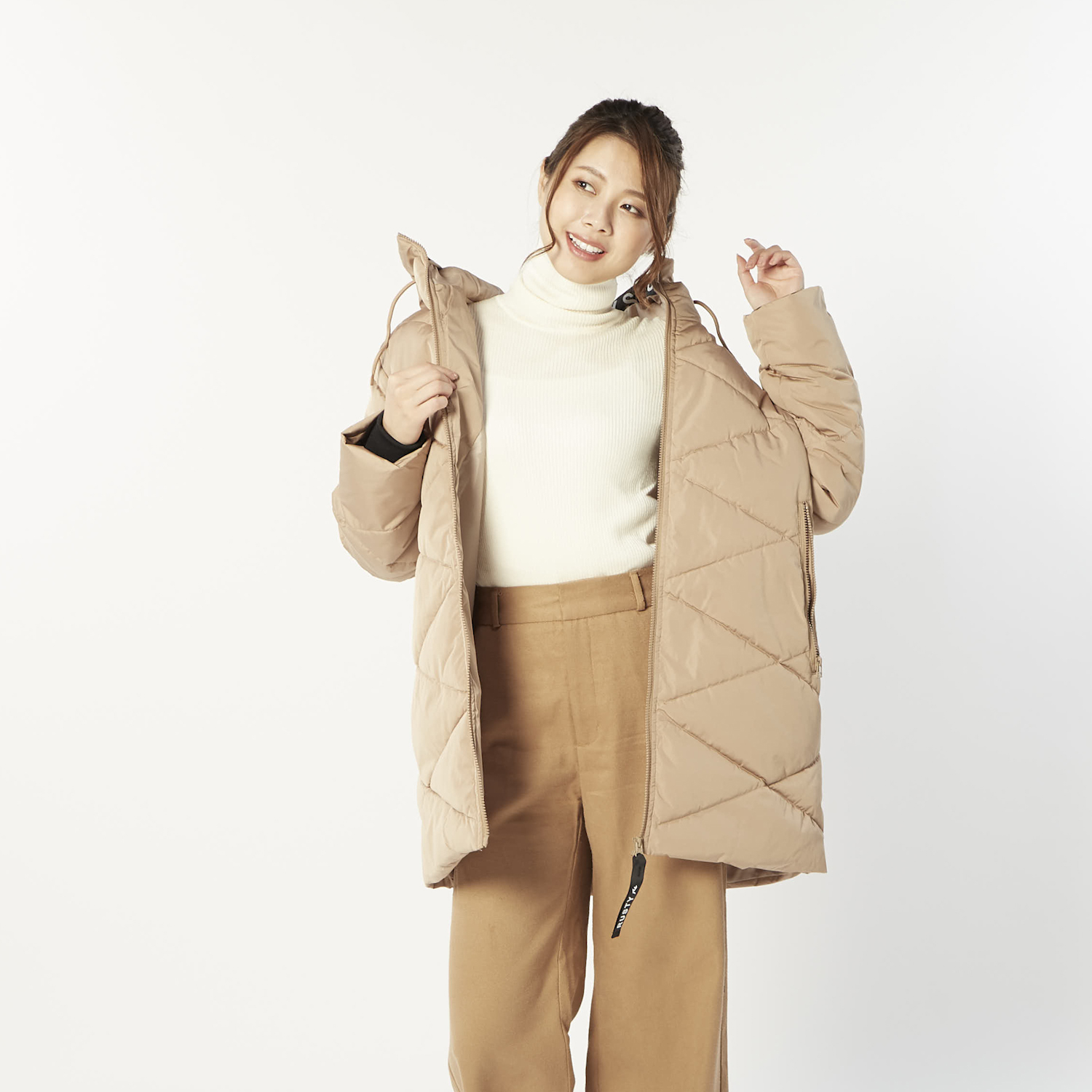 - とってもかわいいシルエットが特徴のBIGキルトジャケット首元も襟高で可愛く見えるポイント。