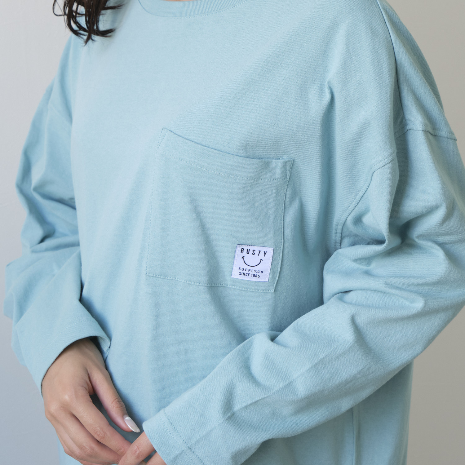 - RUSTYレディース バックビッグロゴロンT。着丈が長めでお尻もすっぽり隠れるシルエット!