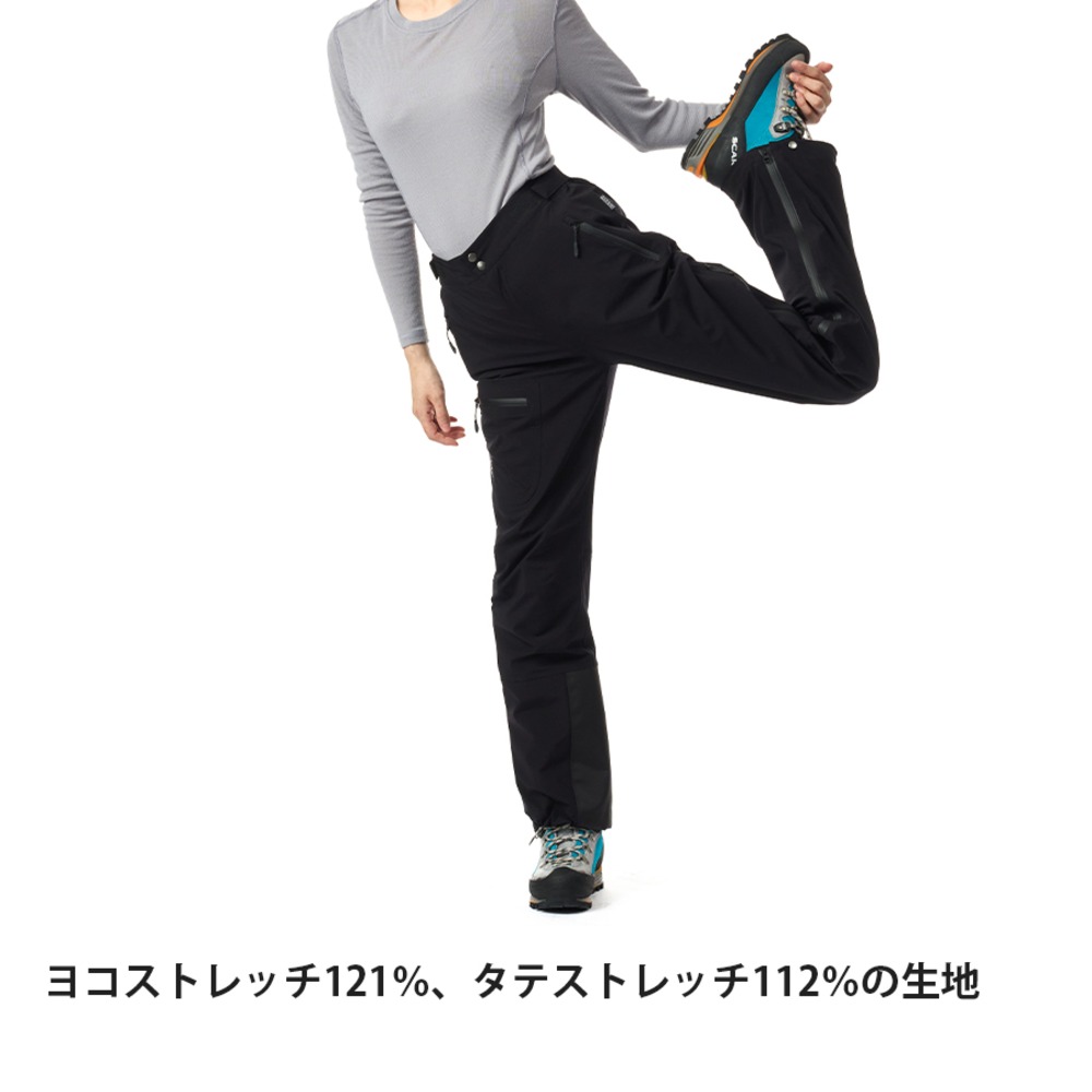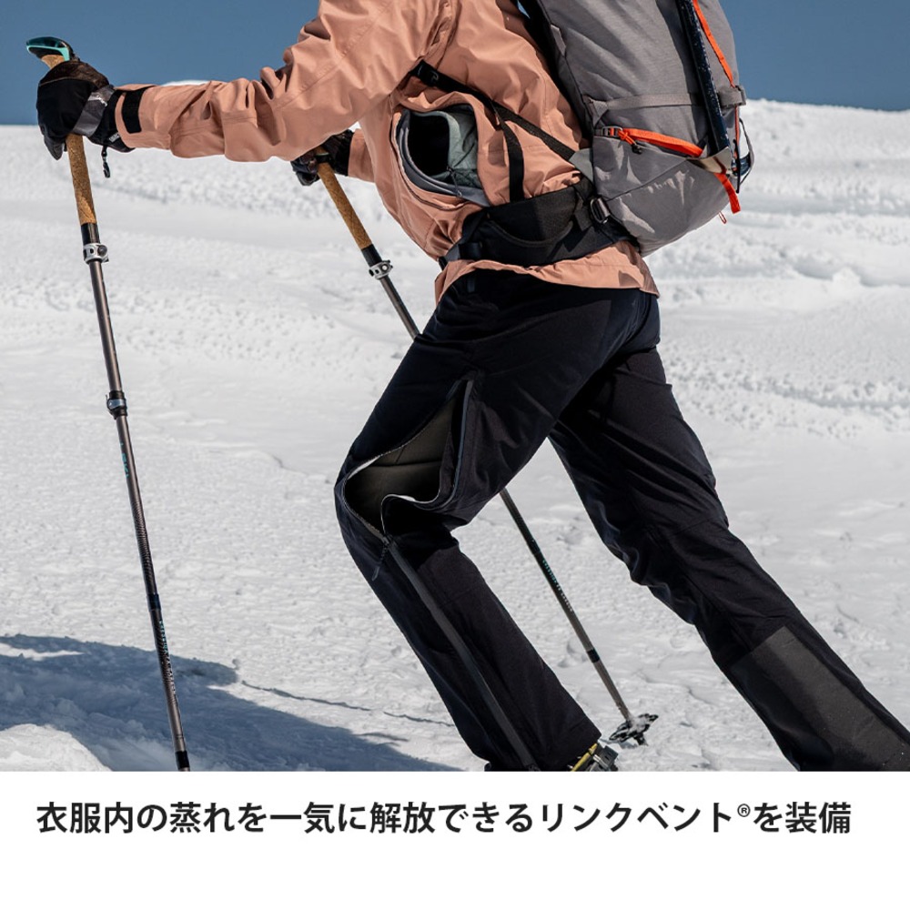 防水透湿性とストレッチ性を両立させた「エバーブレス®」生地を採用。生地に備わる高いストレッチ性はラッセルなど雪山での大きな動きにも追従し、レイヤリングによる着膨れや動きにくさを軽減します。