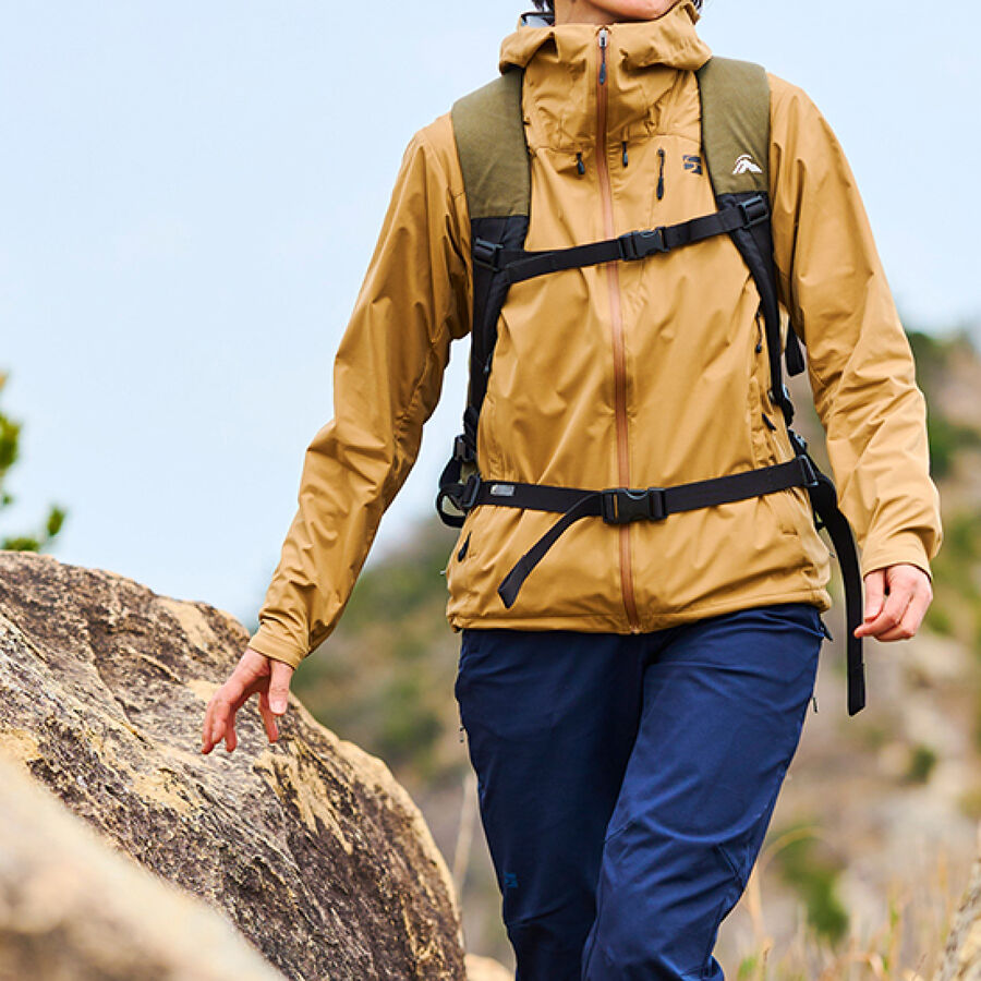 多少の雨や雪、強風や冷気といった天候でも行動できる耐水性と防風性、さらに優れた透湿性を備えています。ほとんどの環境に対応できるため、ウエアの着脱を減らすことが可能です。