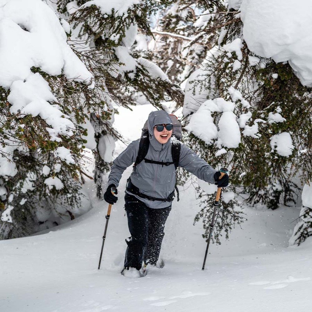 3層の防水透湿生地ながら、驚くほど軽量コンパクト。小雨や小雪時のお守りウェアとしても活躍します。※シームテープは施していません