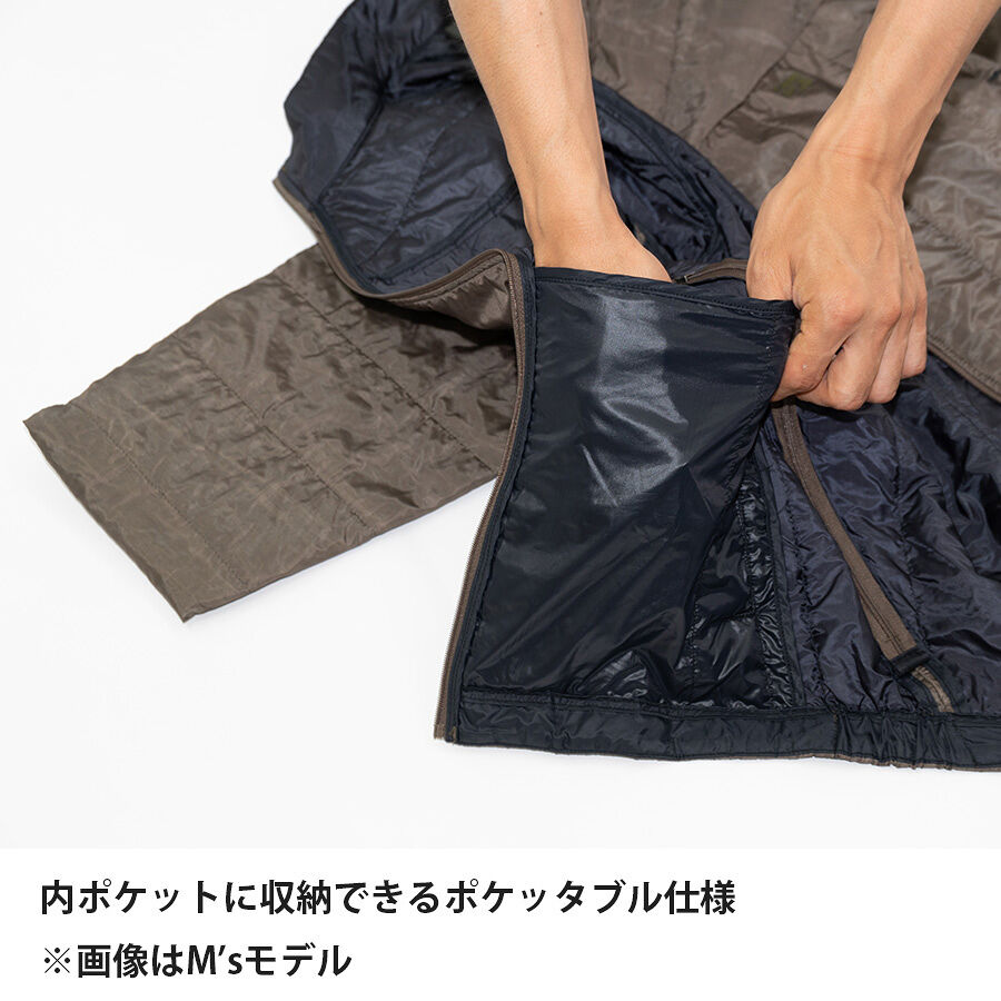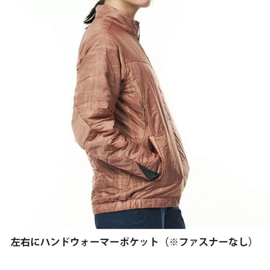 保温素材として独自開発の「ファインポリゴン®」を封入。汗・水・雪・結露などで濡れた際もロフトを維持し、保温力を確保できます。