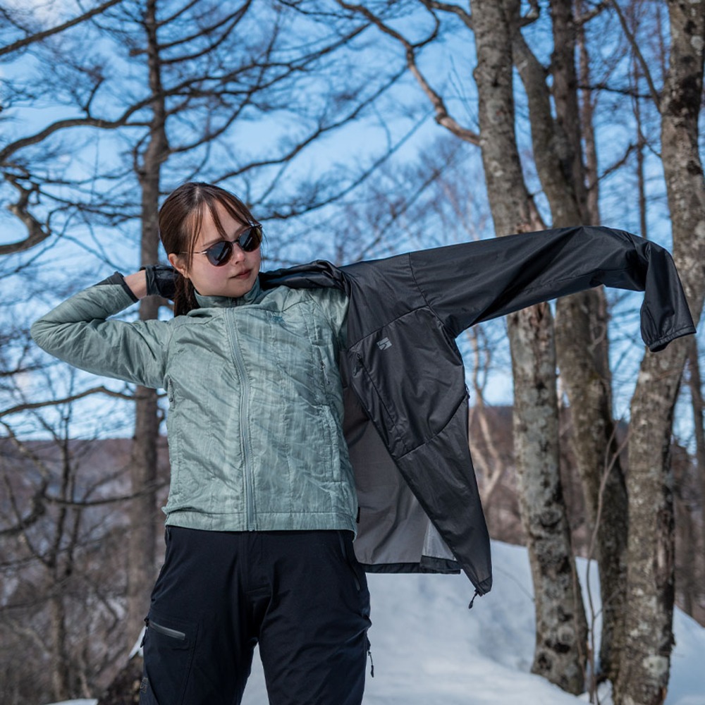 寒い時期にはL3ミッドレイヤーとして行動着用でき、暖かい時期には携行用保温着としてコンパクトに携行できるため、オールシーズンに活用できる便利な一着です。